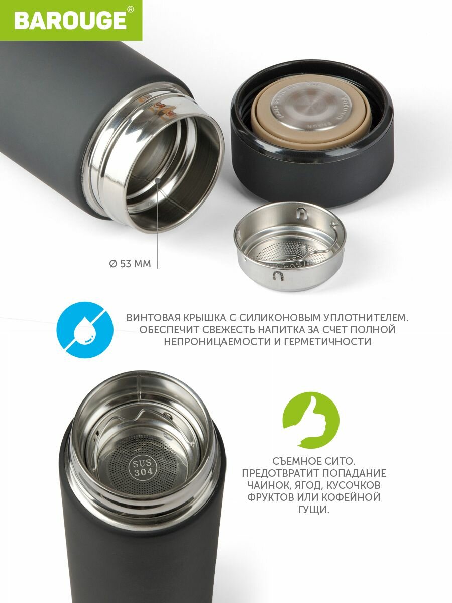 Barouge Термобутылка черная из нержавеющей стали Travel, 450 мл BT-002/50 BT-002 450 мл/черный/бутыл .