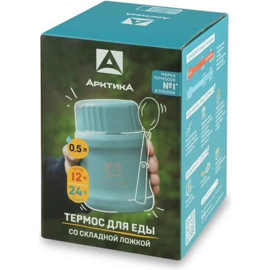 Термос для еды и супа Арктика 311-500 голубой 0.5 литров со складной ложкой