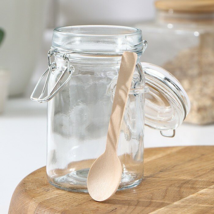 Купить Банка стеклянная для сыпучих продуктов с бугельным замком и ложкой Доляна «Оптима», 300 мл, 8,5×6,5×11 см