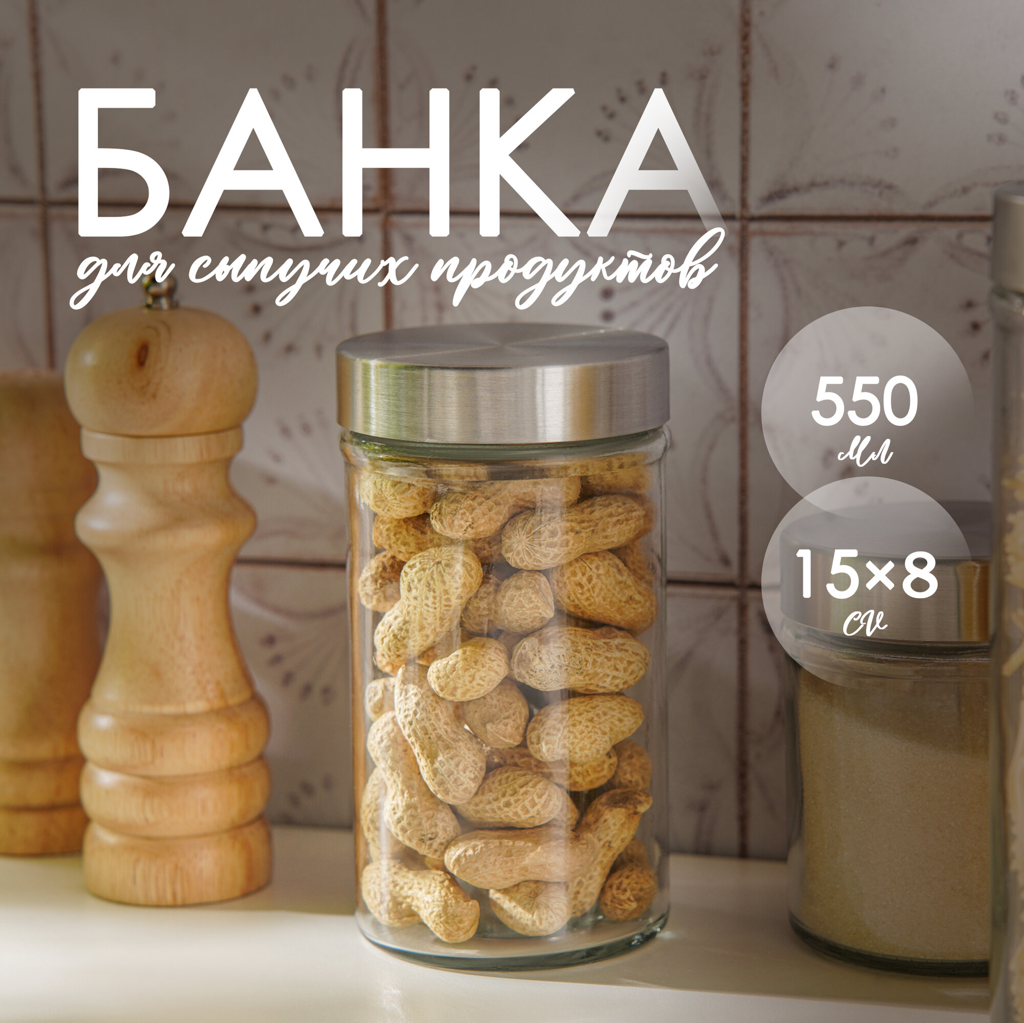 Купить Банка для хранения сыпучих продуктов стеклянная с металлической крышкой Доляна «Премиум» 550мл