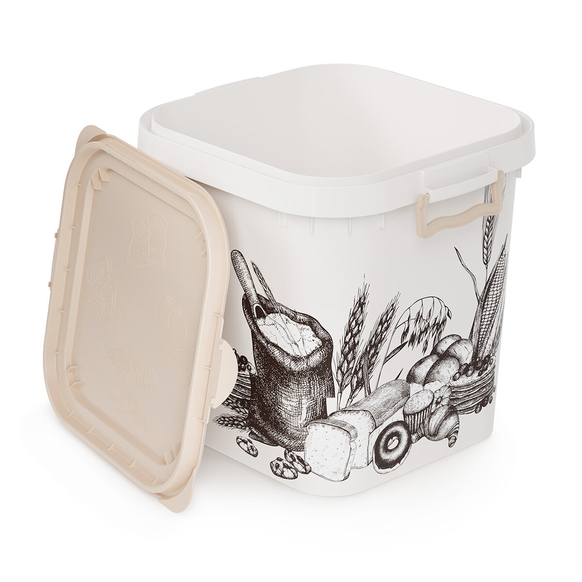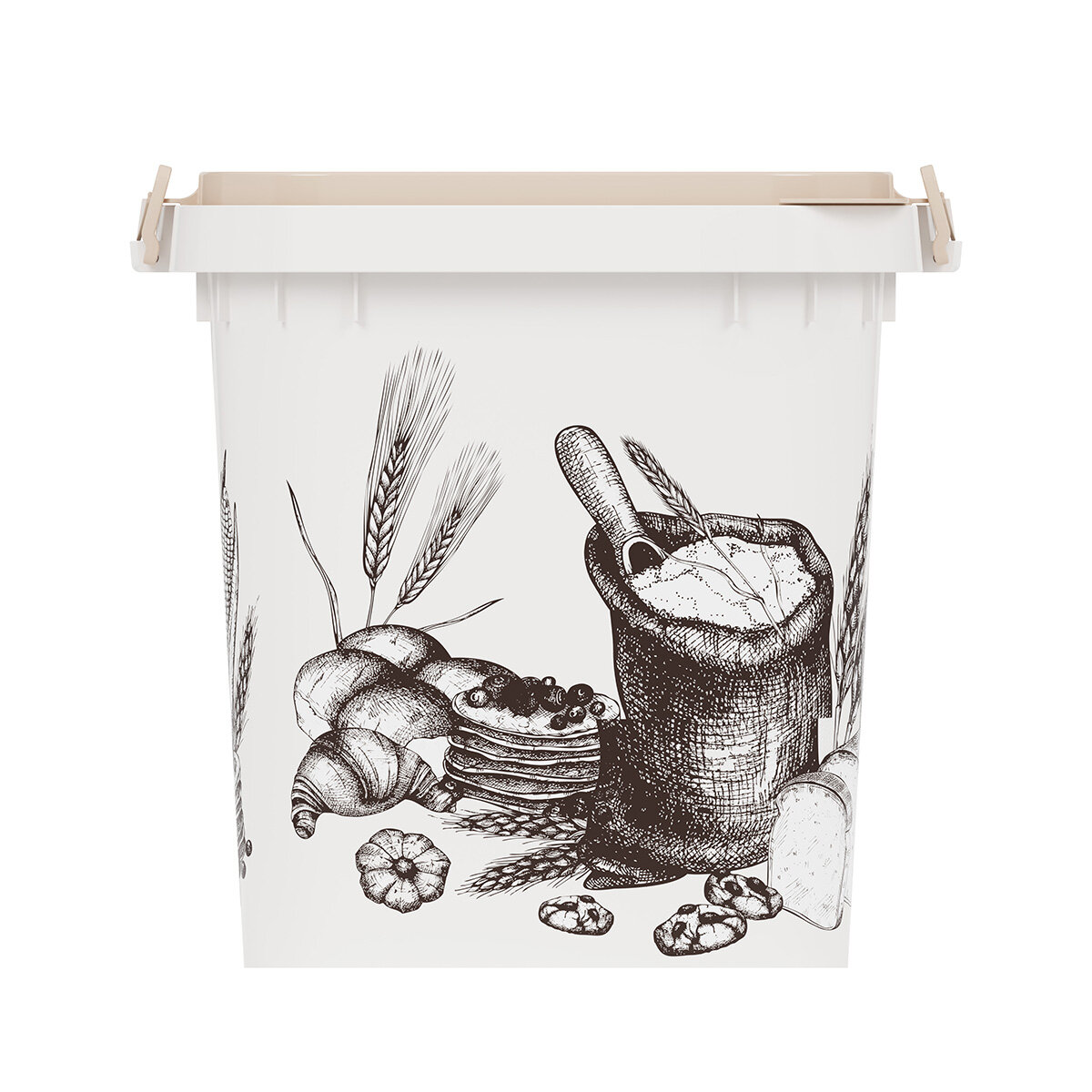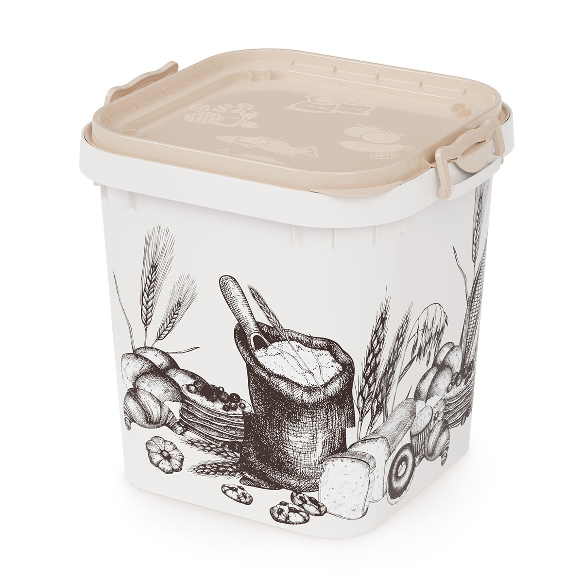 Ёмкость для муки и сахара, 25 л, с декором, цвет белый