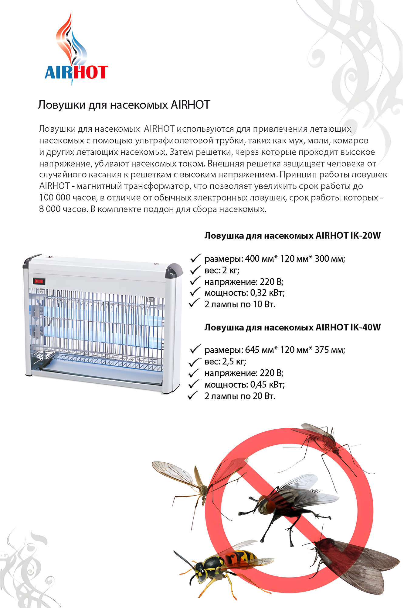 Ловушка для мух, комаров AIRHOT IK-40W 100м2 инсектицидная электрическая, лампа от комаров и насекомых уличная, для дома