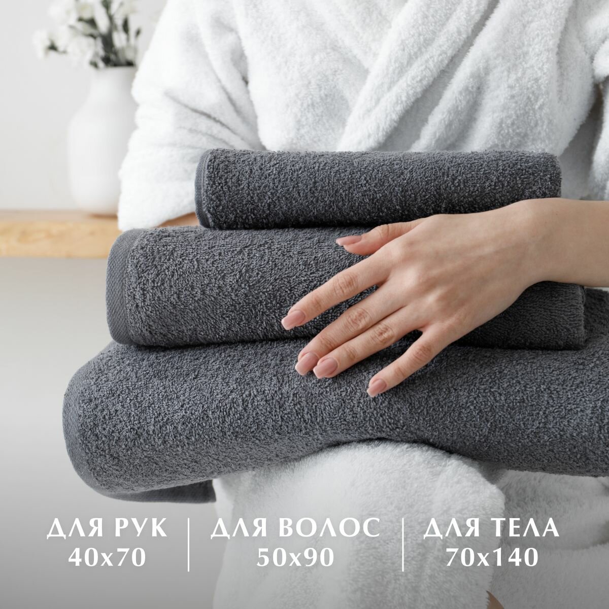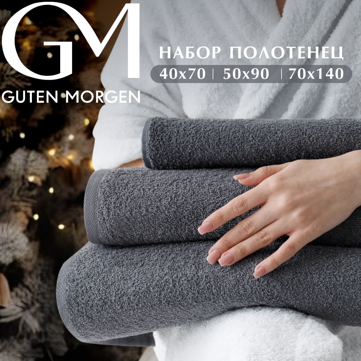 Набор полотенец махровых, Guten Morgen 3 шт. 30х50, 50х100, 70х140, хлопок 100%, 500 г/м2, Графит