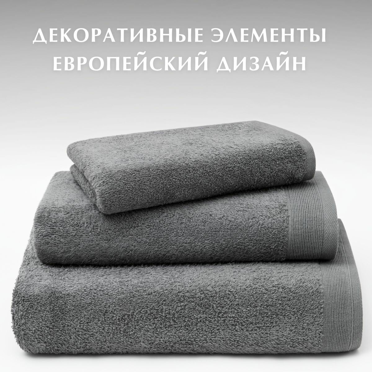 Набор полотенец махровых, Guten Morgen 3 шт. 30х50, 50х100, 70х140, хлопок 100%, 500 г/м2, Графит