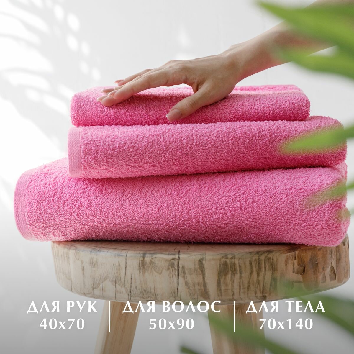 Набор полотенец махровых, Guten Morgen, Розовый кристалл, 3 шт. 40х70, 50х90, 70х140, хлопок 100%, 400 г/м2