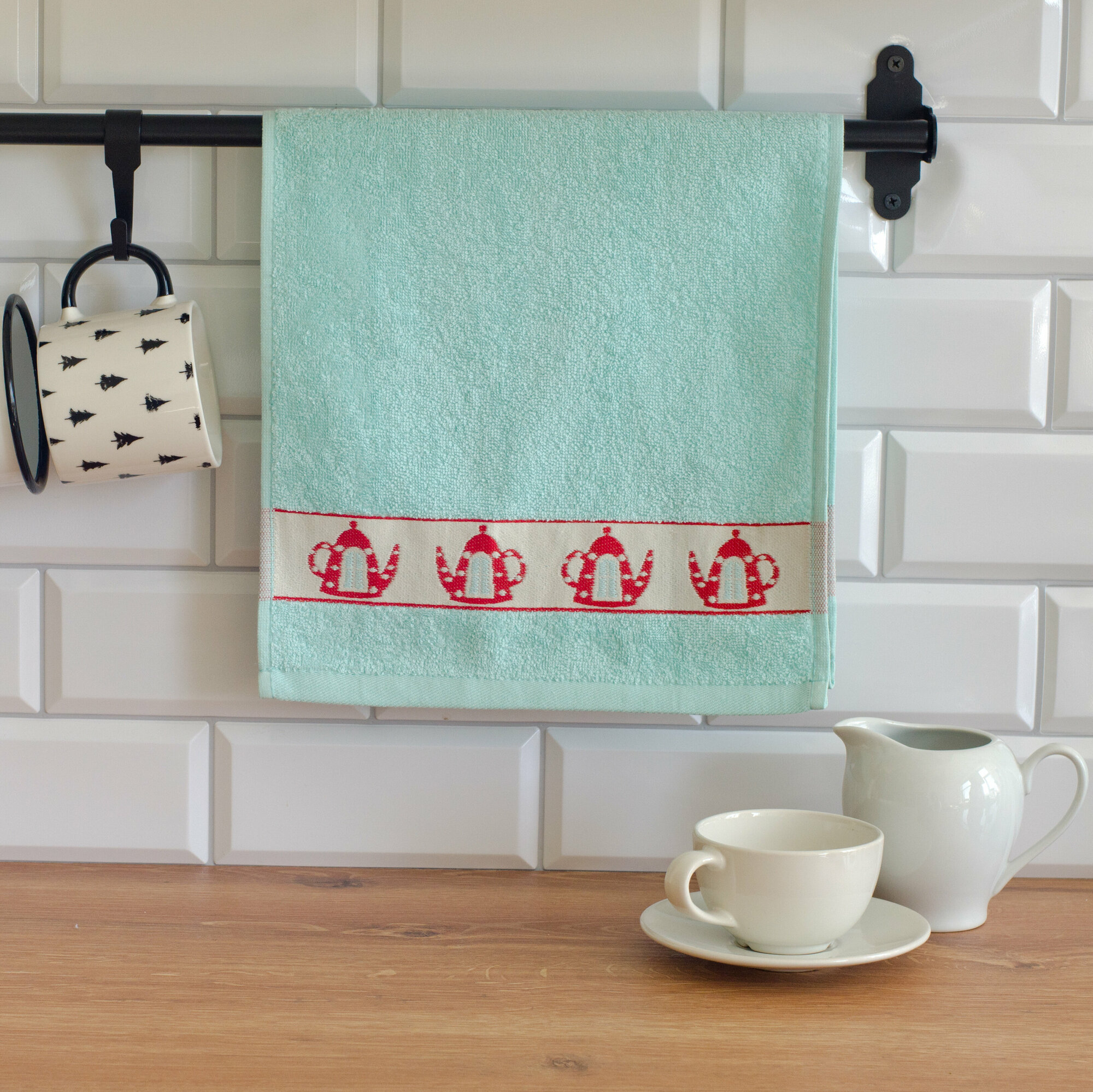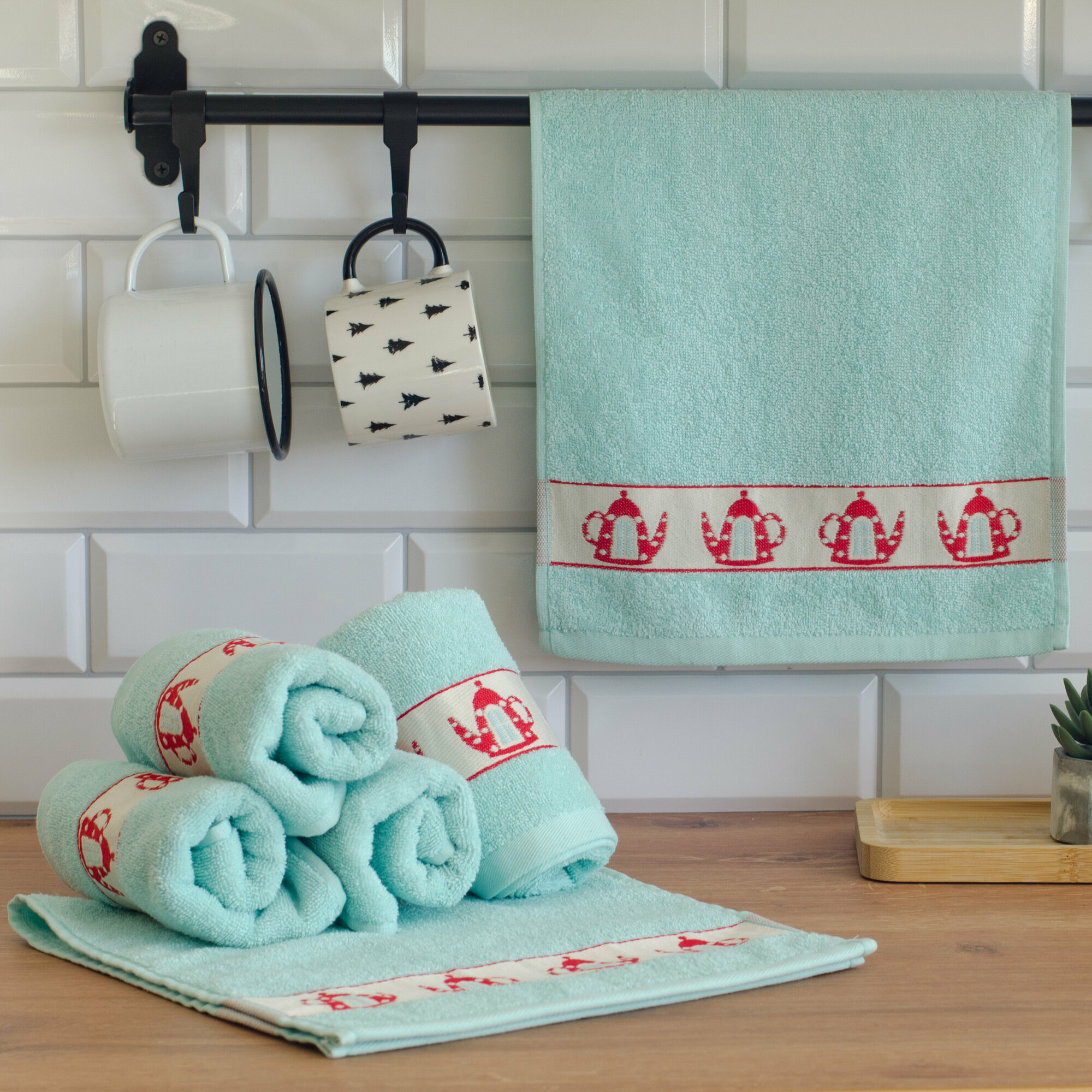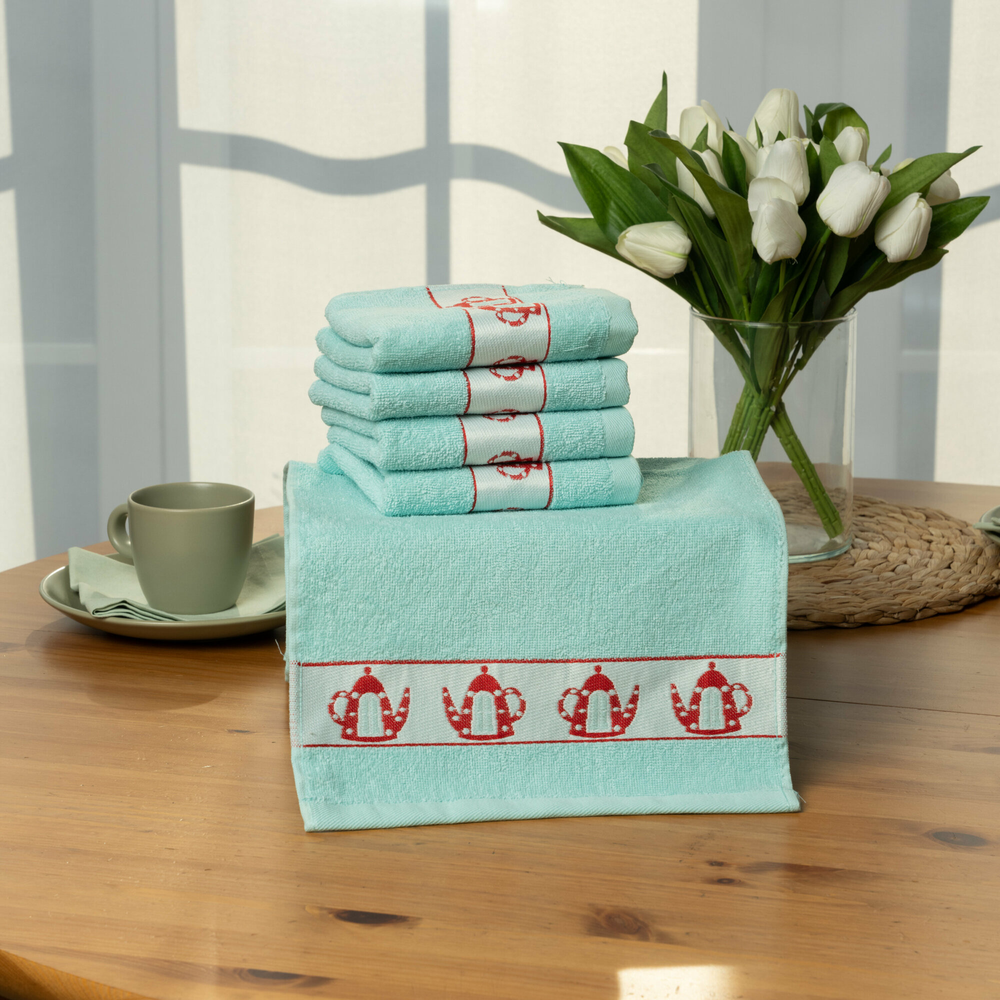 Полотенца махровые кухонные, 30х60 см, набор 5 шт, Китчен Чайники, бирюзовые