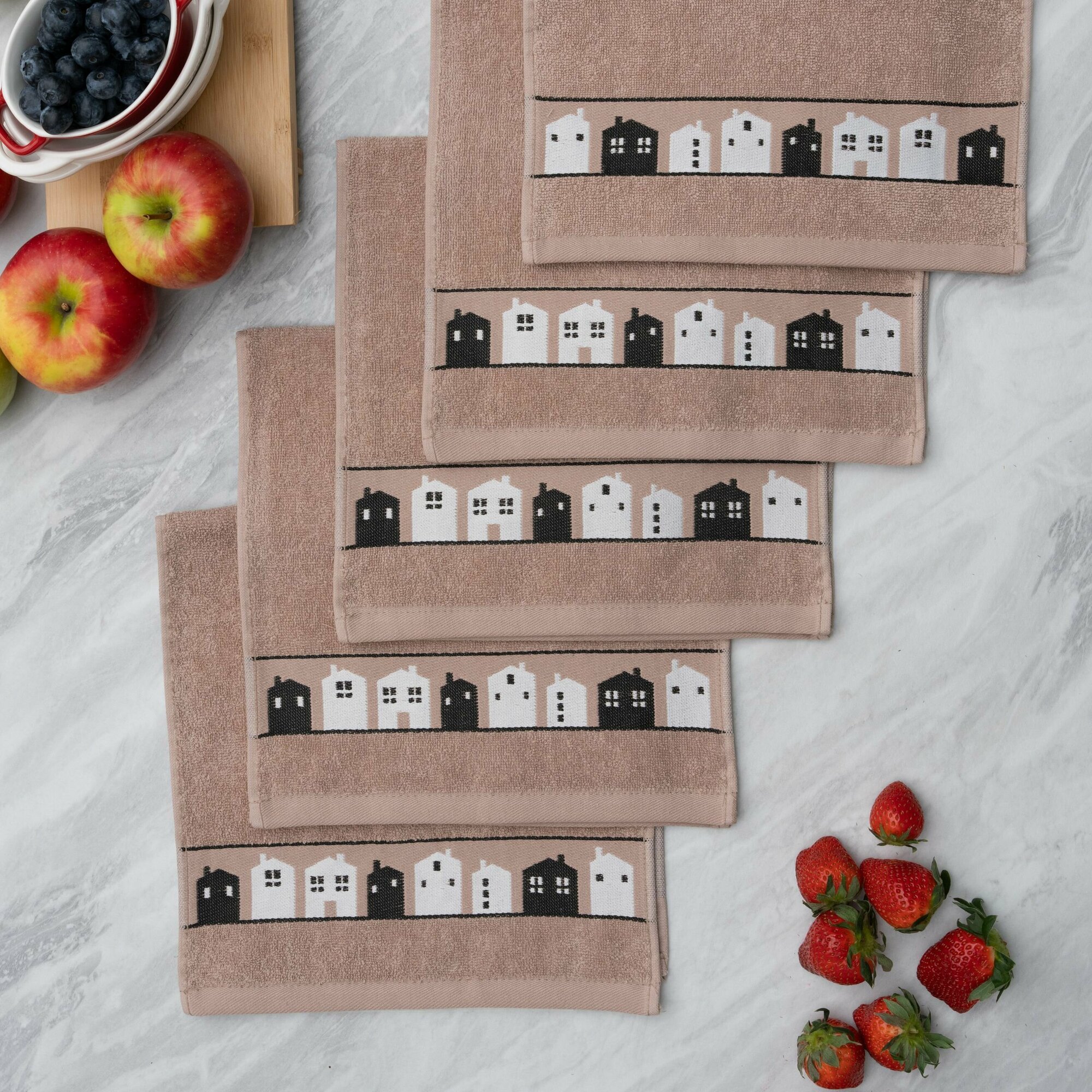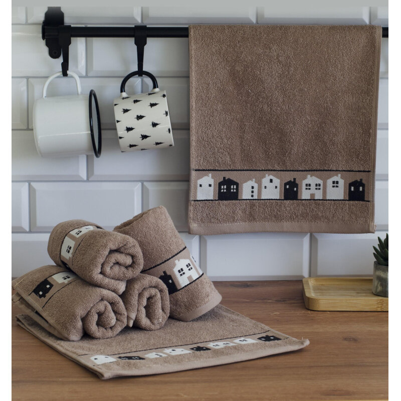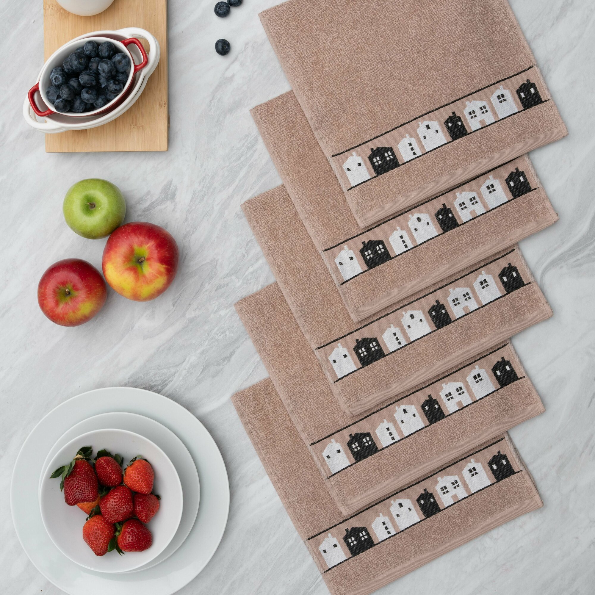 Полотенца махровые кухонные, 30х60 см, набор 5 шт, Китчен Городок, коричневые