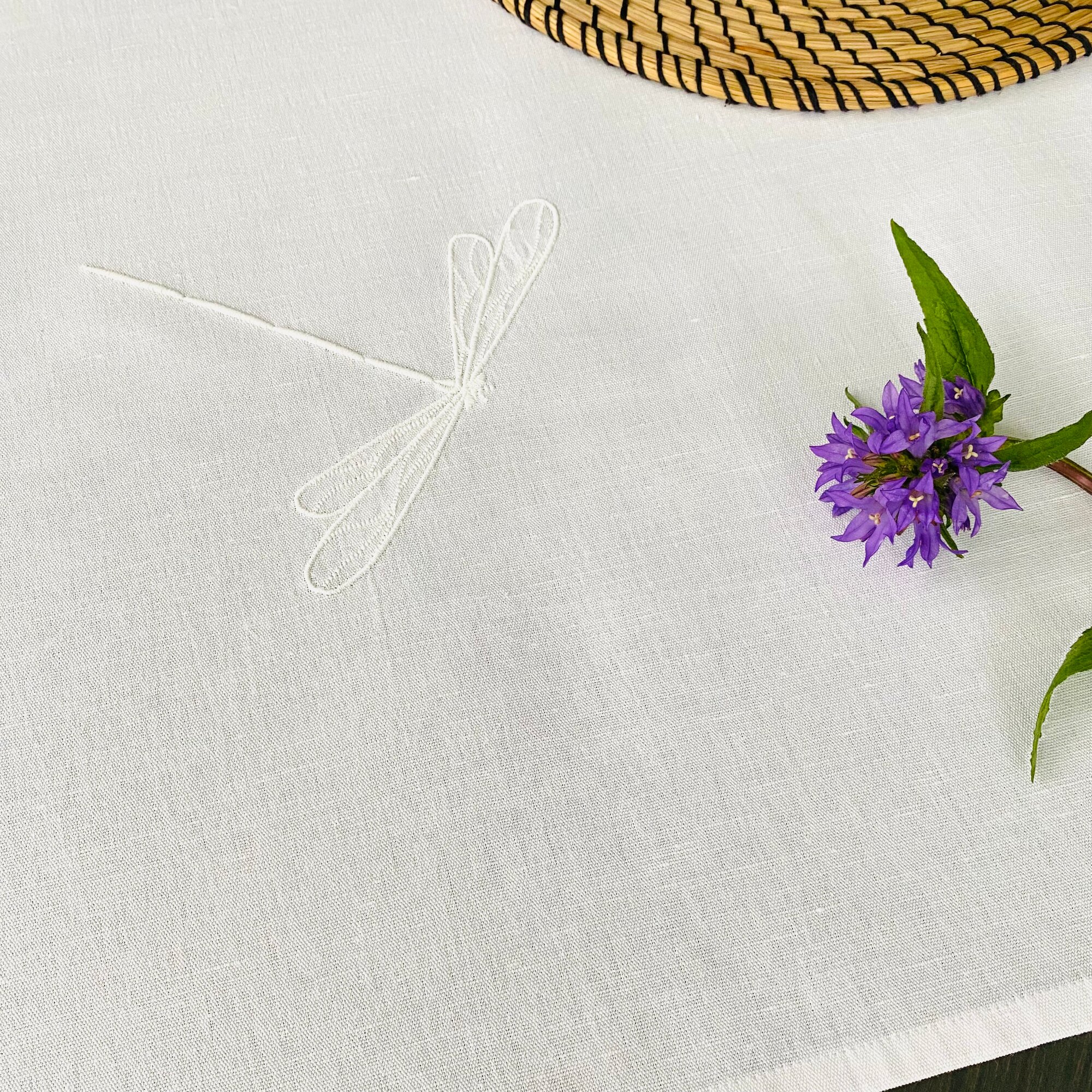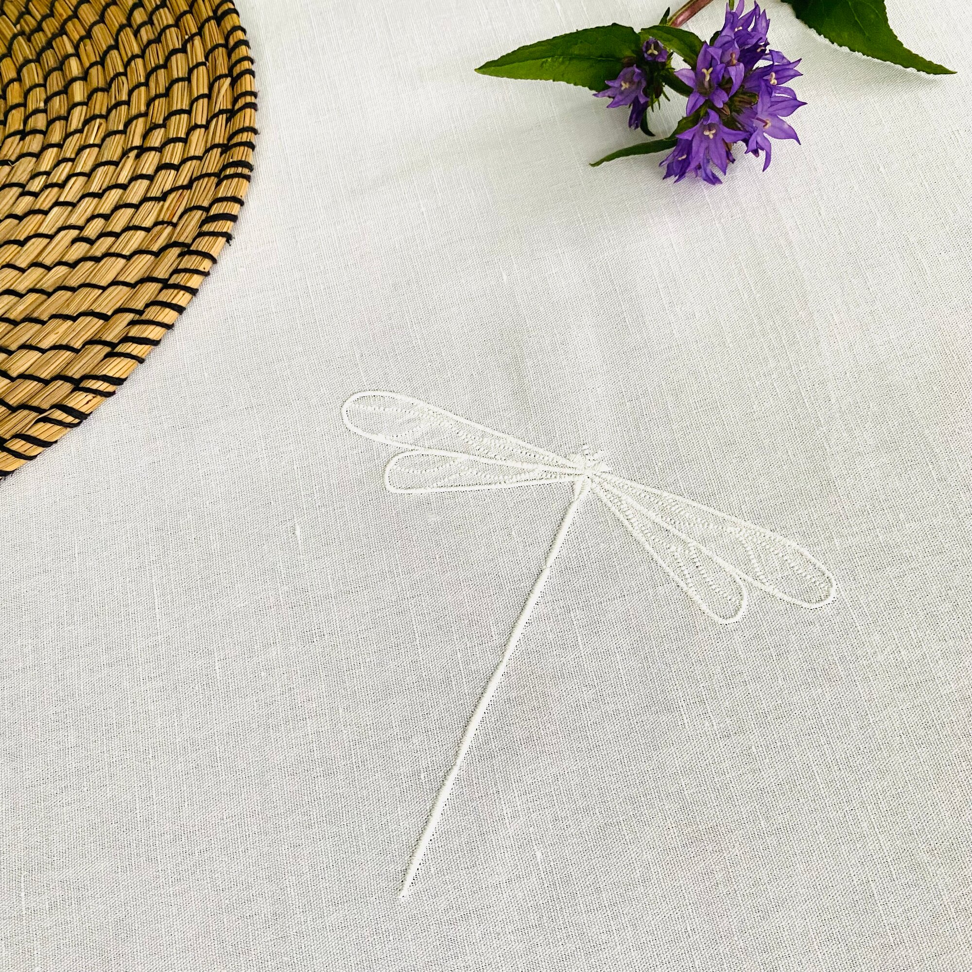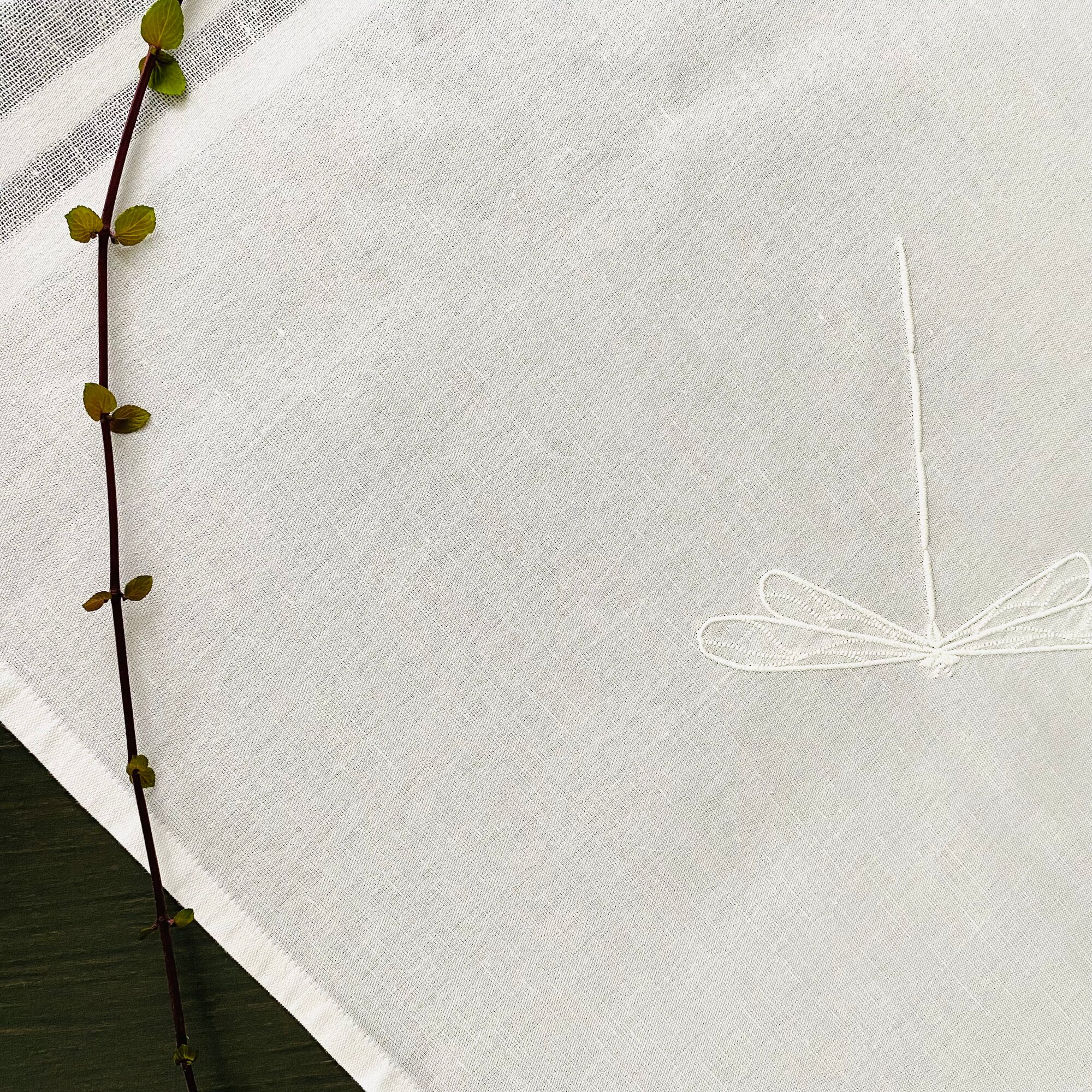 Дорожка для стола ULULA NIMES, 50 х 150 см, 100% лен, белый, стрекозы, вышивка интересное: