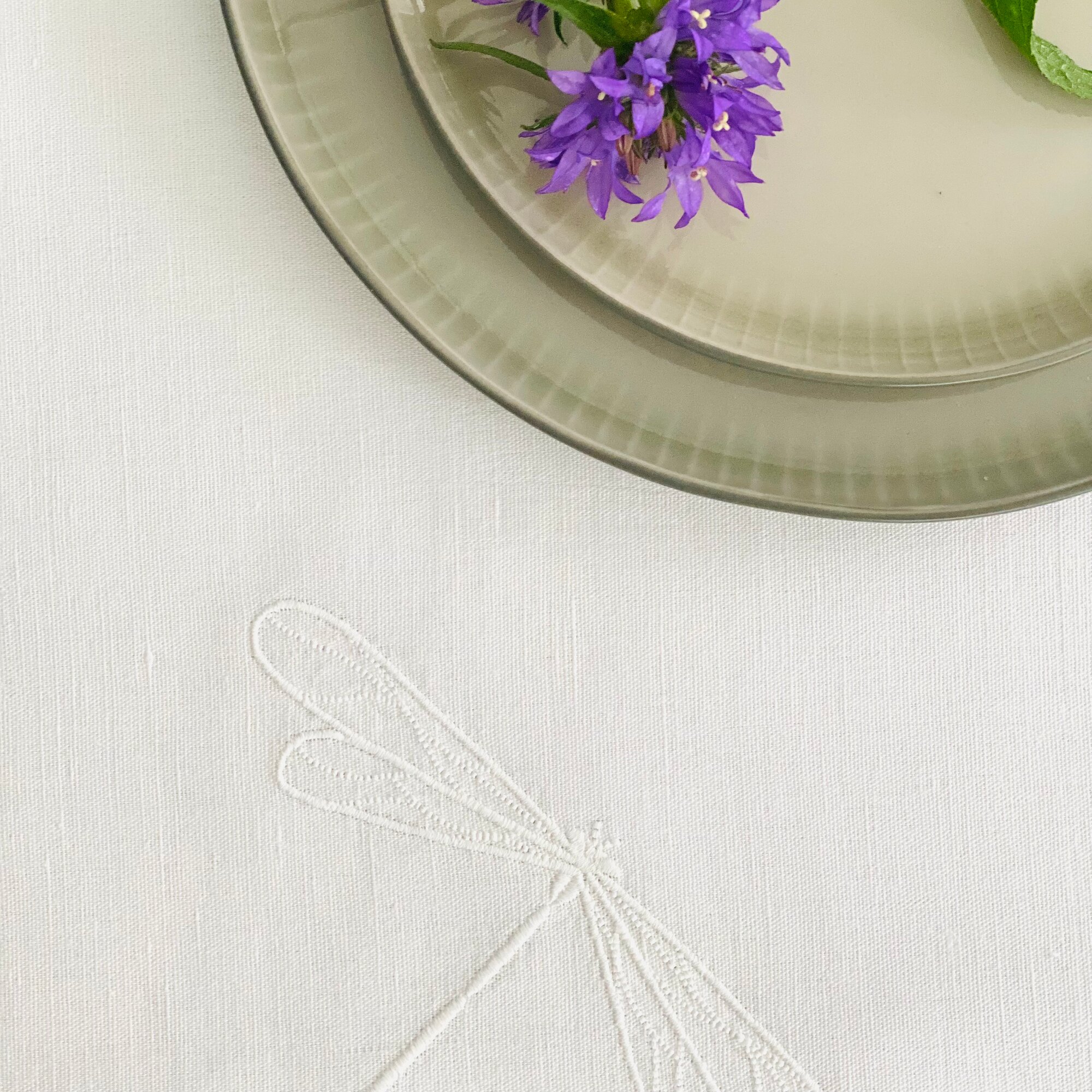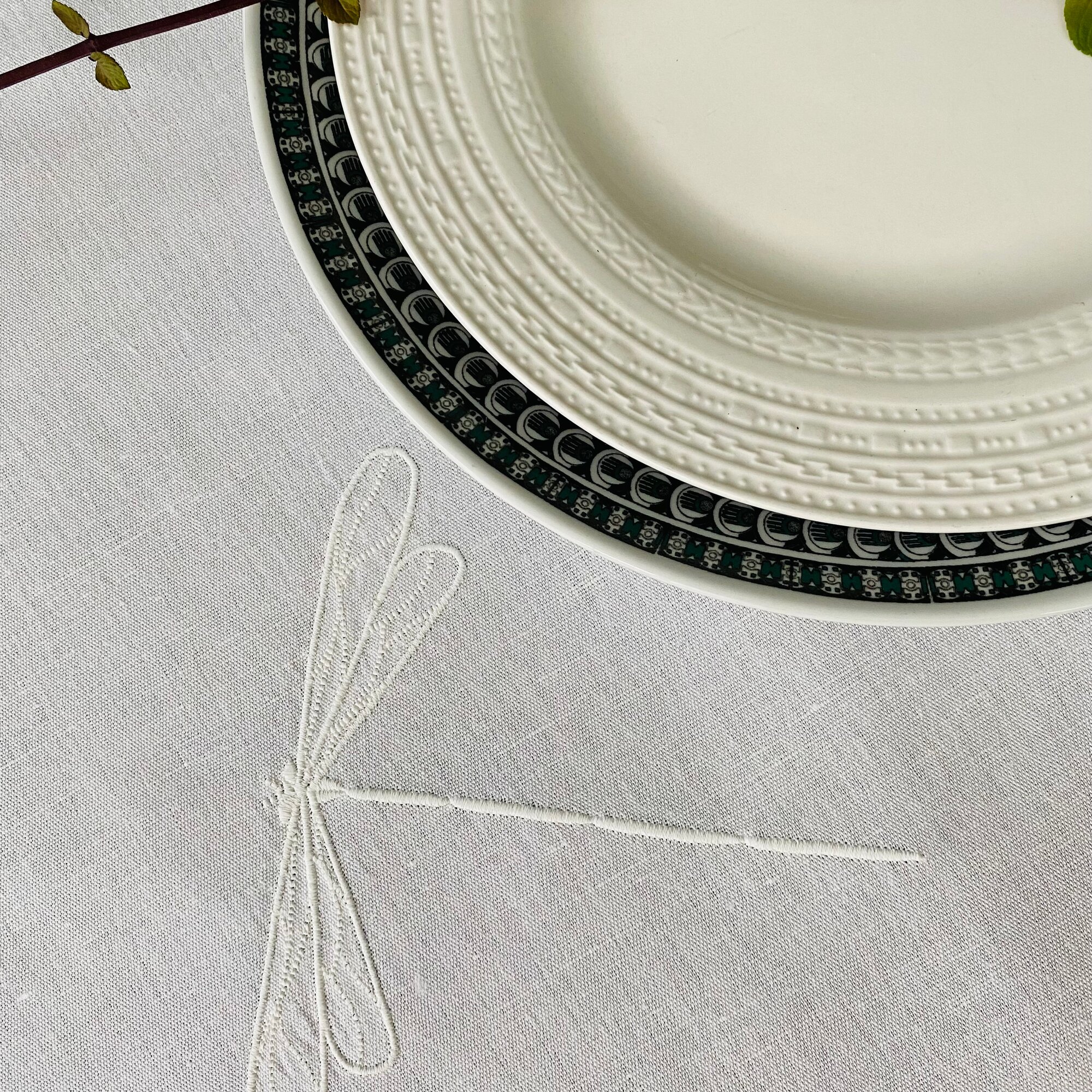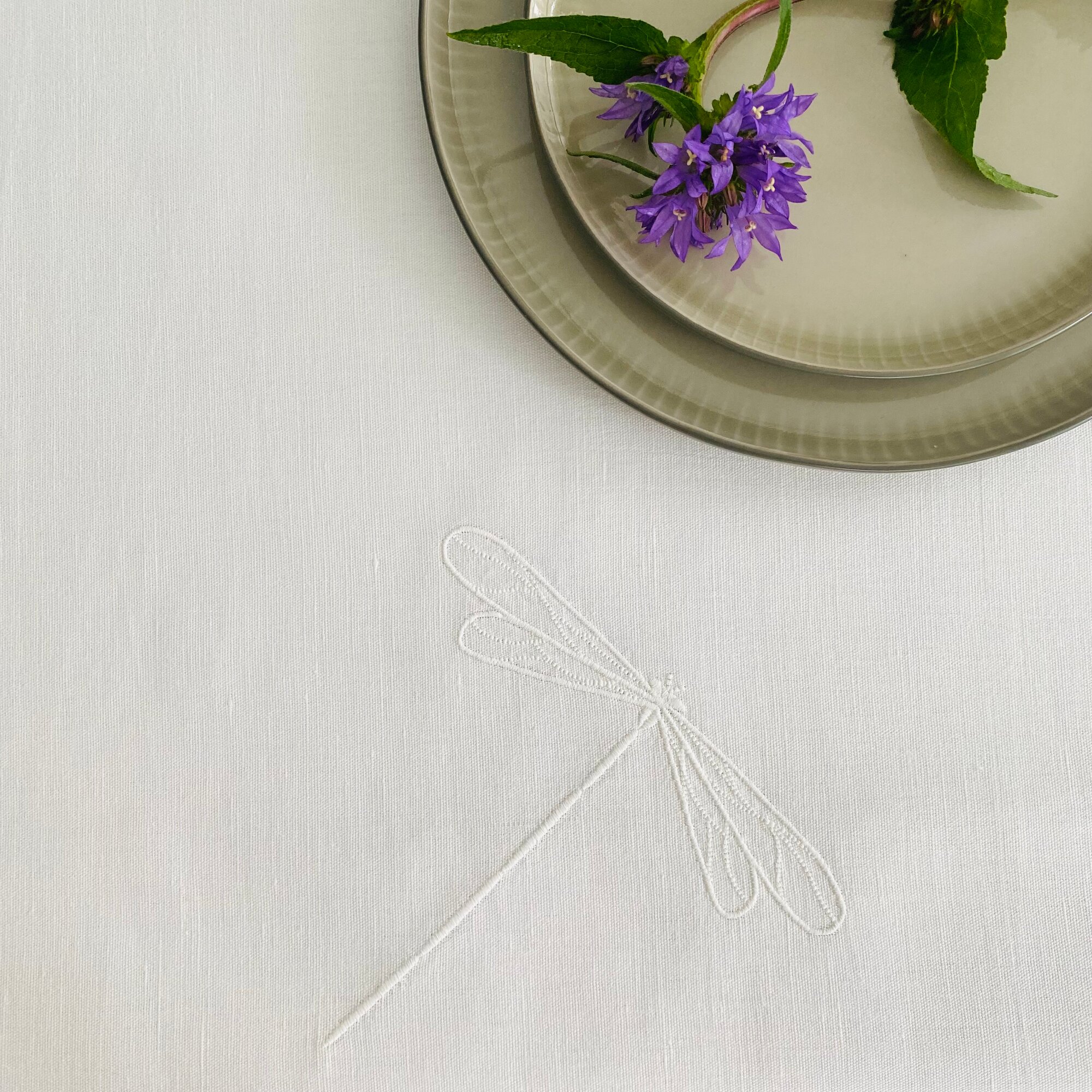 Дорожка для стола ULULA NIMES, 50 х 150 см, 100% лен, белый, стрекозы, вышивка интересное: