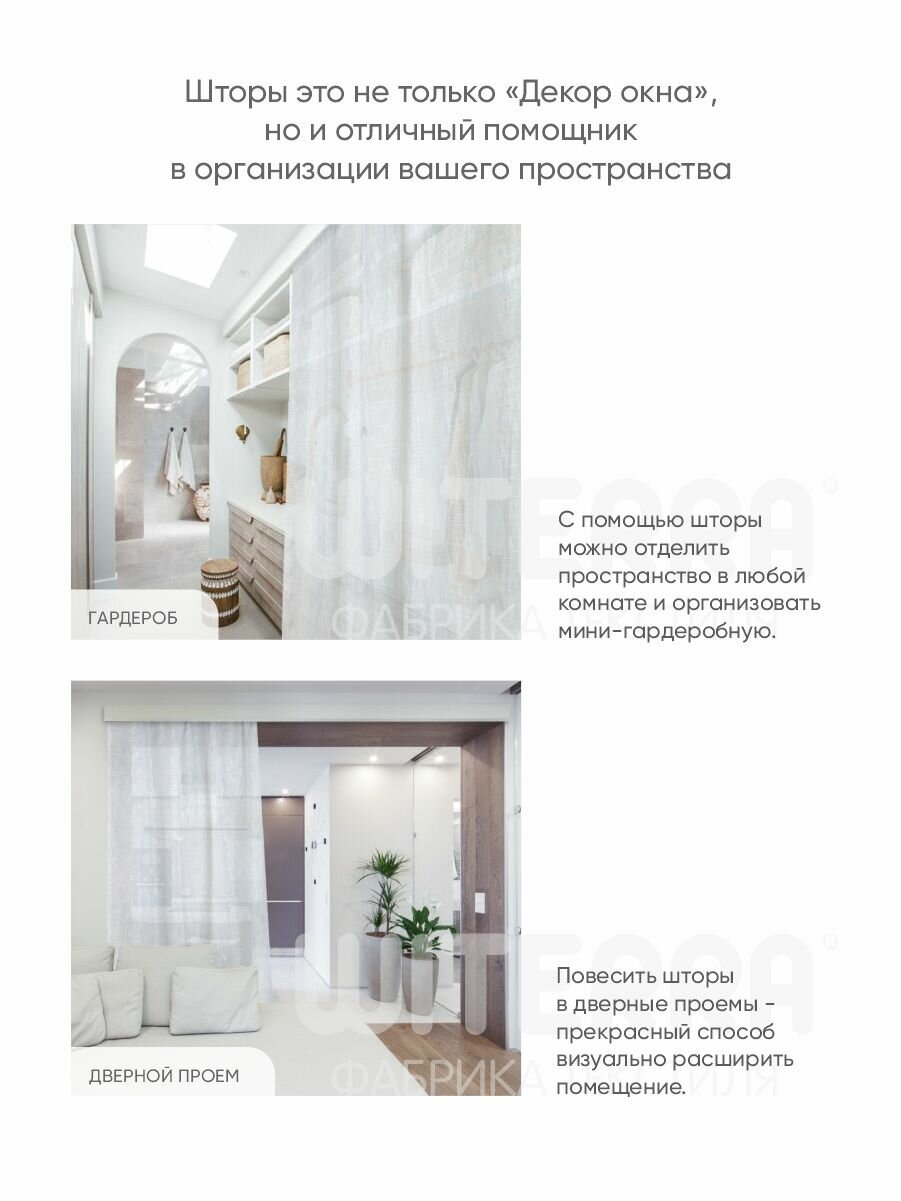 Штора тюль Witerra Вилладж под лен, на шторной ленте, для потолочного и круглого карнизов, 275х300 см, 1 шт.