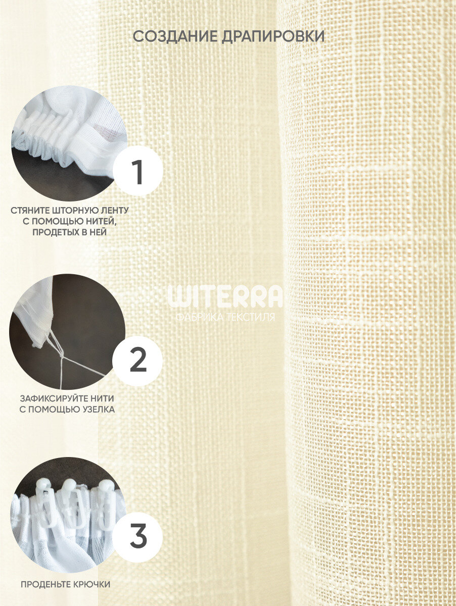 Штора тюль Witerra Вилладж под лен, на шторной ленте, для потолочного и круглого карнизов, 275х300 см, 1 шт.