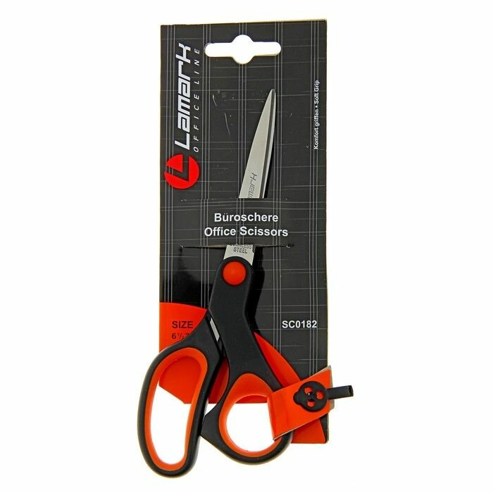 Ножницы Lamark 17.1 см эргоном пласт/ручки с мягк вставк оранж на бум/держателе SC0182 797832