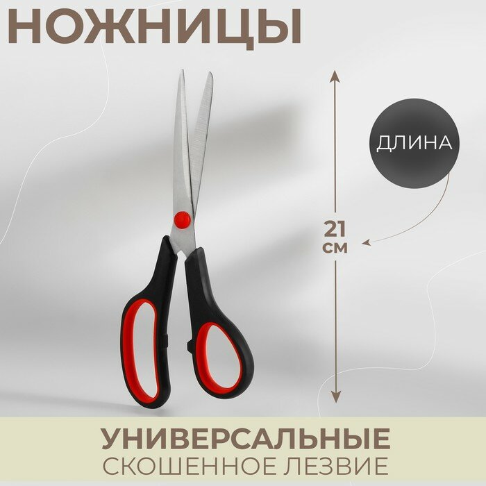 Купить Ножницы универсальные, скошенное лезвие, 8,5", 21 см, цвет чёрный/красный (2 шт.)