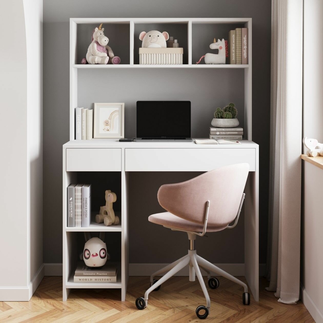 Компьютерный, письменный стол Элис с надстройкой, с ящиками, с полками, 100.2х50.2х147.6 см, Белый текстурный