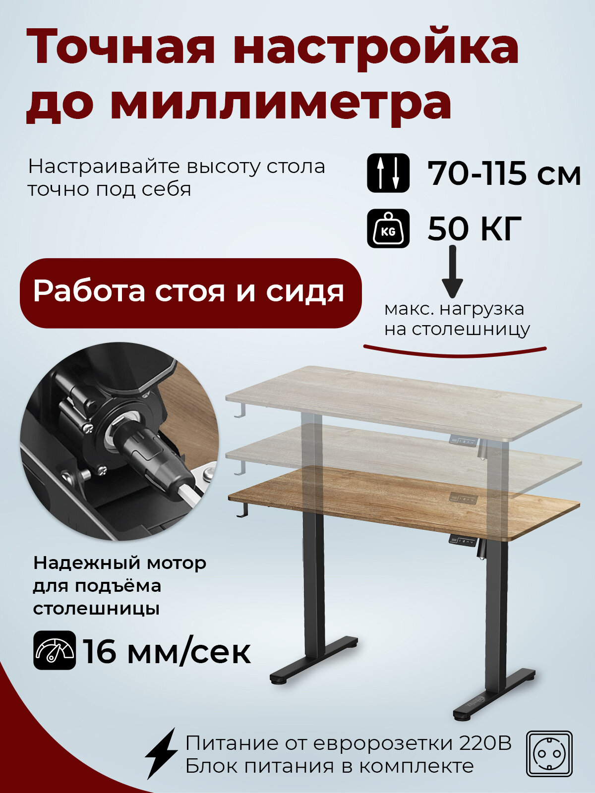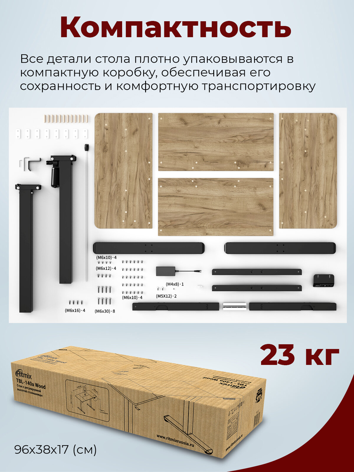 Стол компьютерный с регулируемой высотой RITMIX TBL-120a wood, с подъемным механизмом, для работы и сидя, и стоя