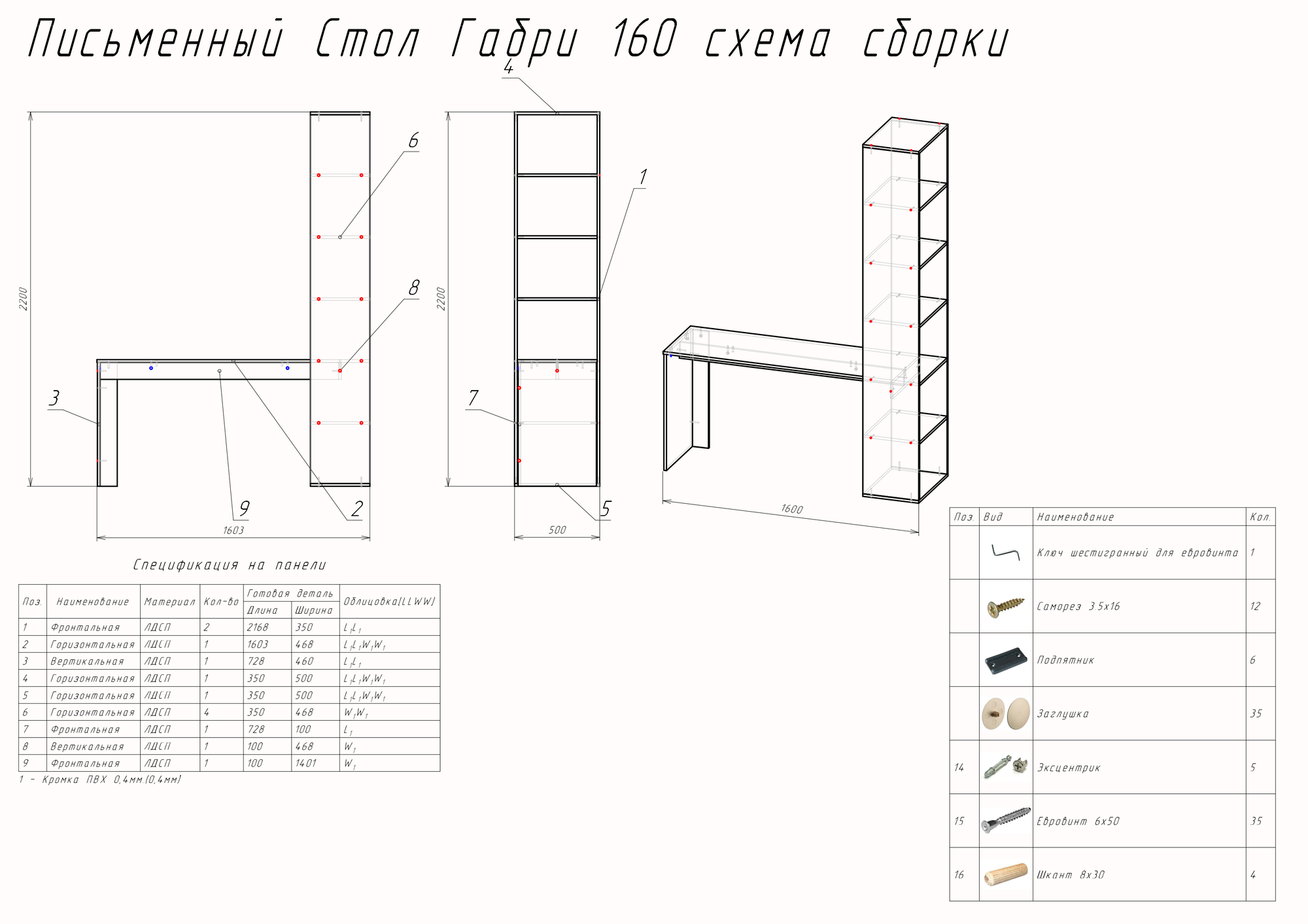 Письменный Стол Габри 160 Белый (ШхВхГ) 160х220х50см