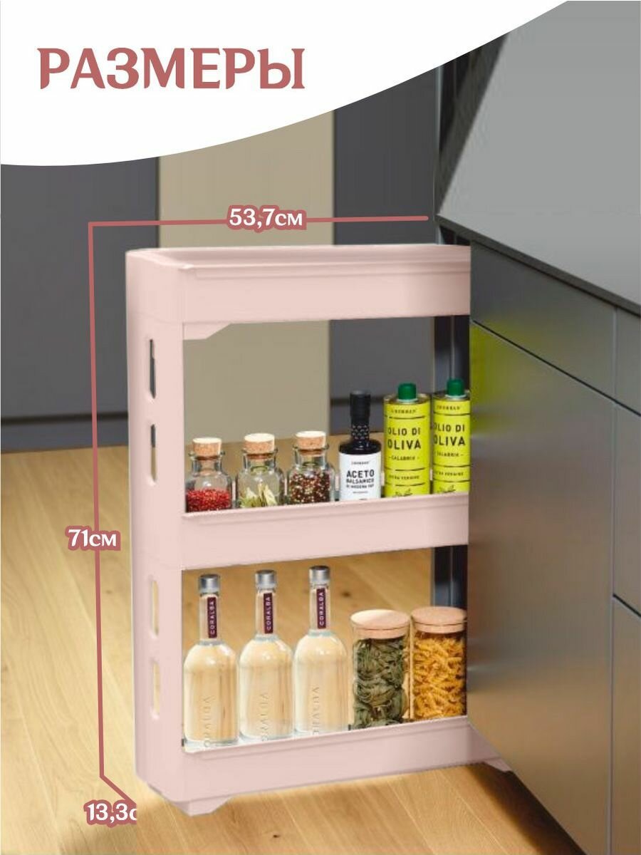 Этажерка Keeplex Regular на колесиках (бежевый топаз,3-х секционный), 53,7х13,3х71 см KL383812005