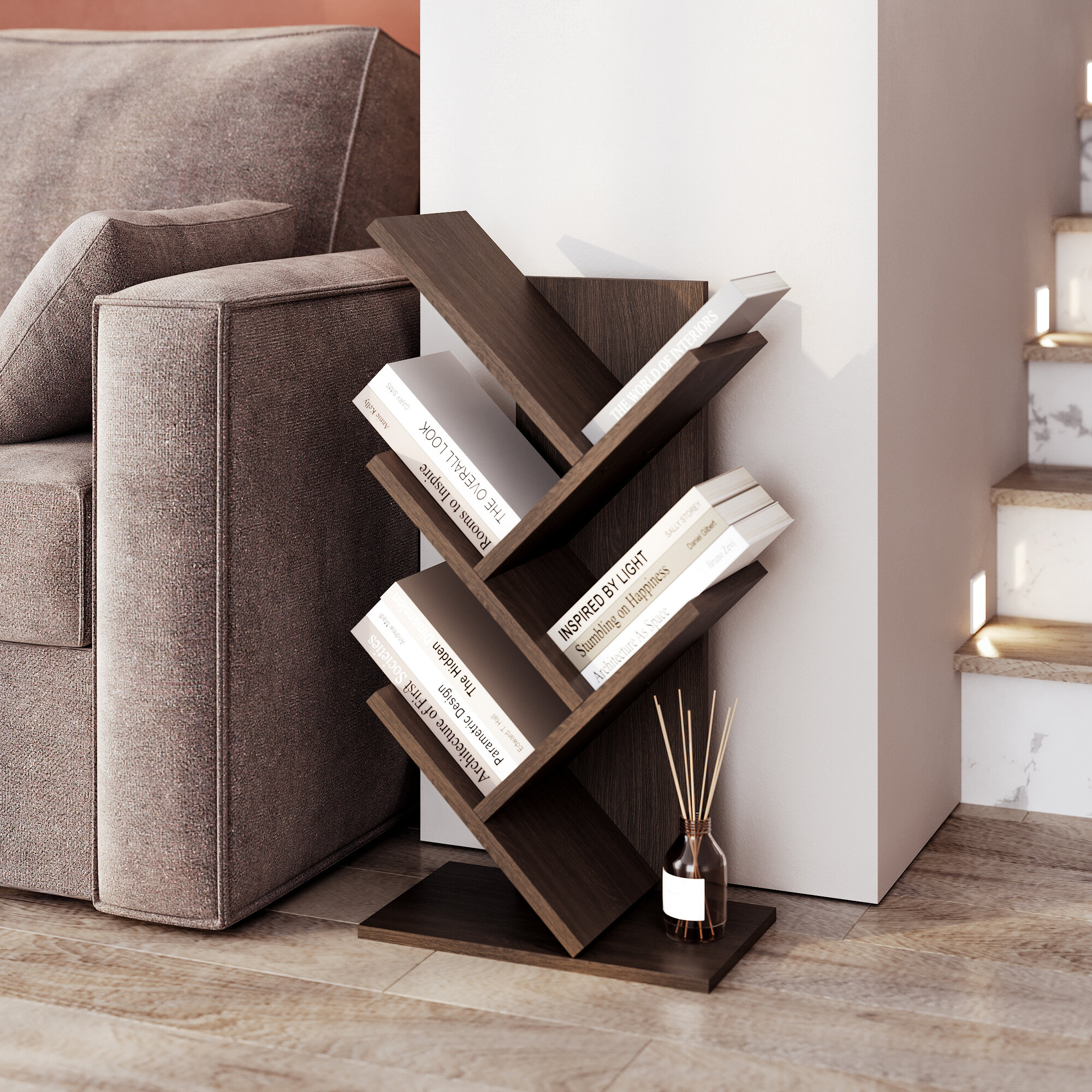 Стеллаж деревянный Нонтон Симпл графит 40.2x51.4x190 см, с ящиками