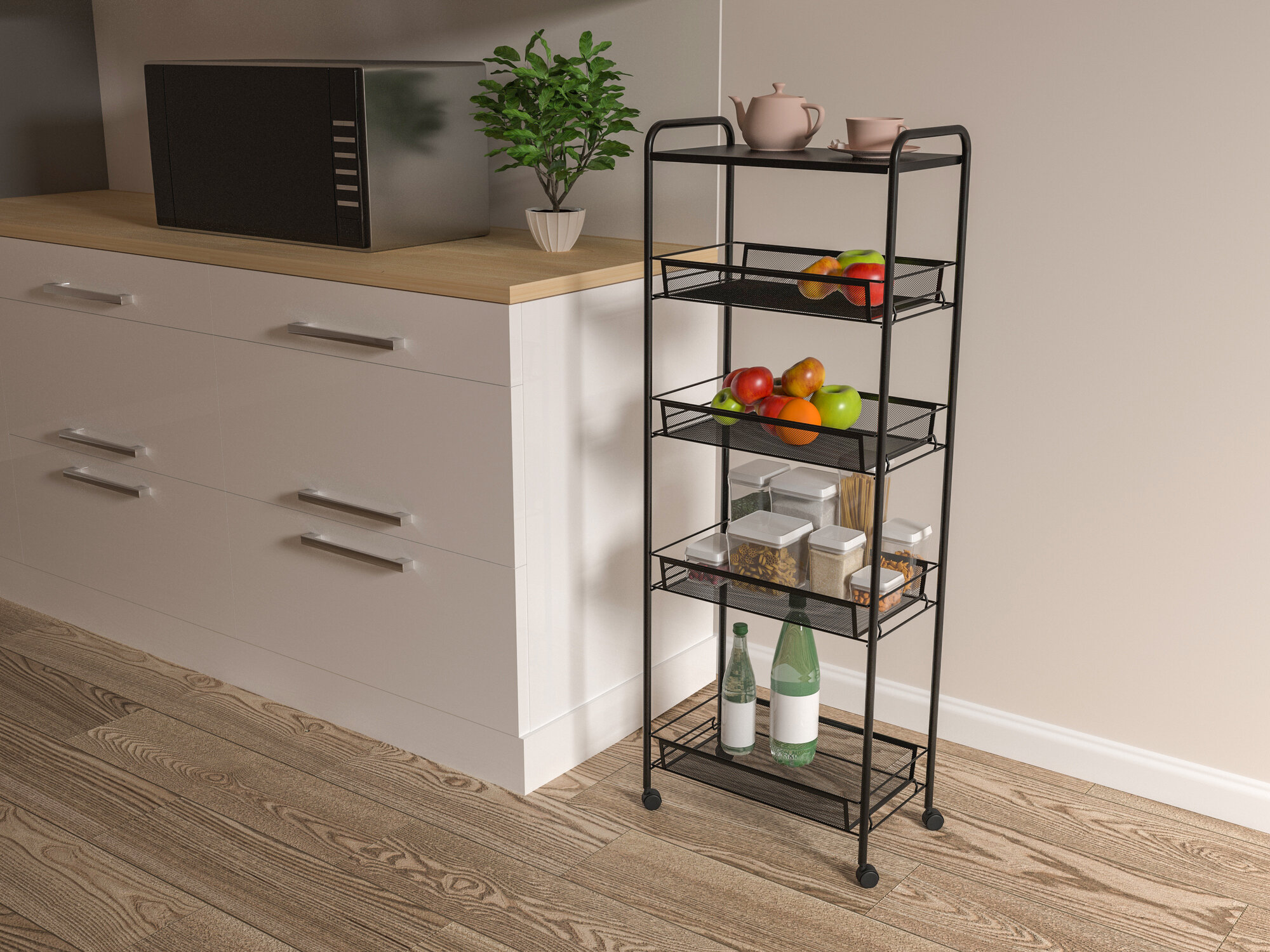 Этажерка Ладья 25КС черная, на колесиках Э443ч .