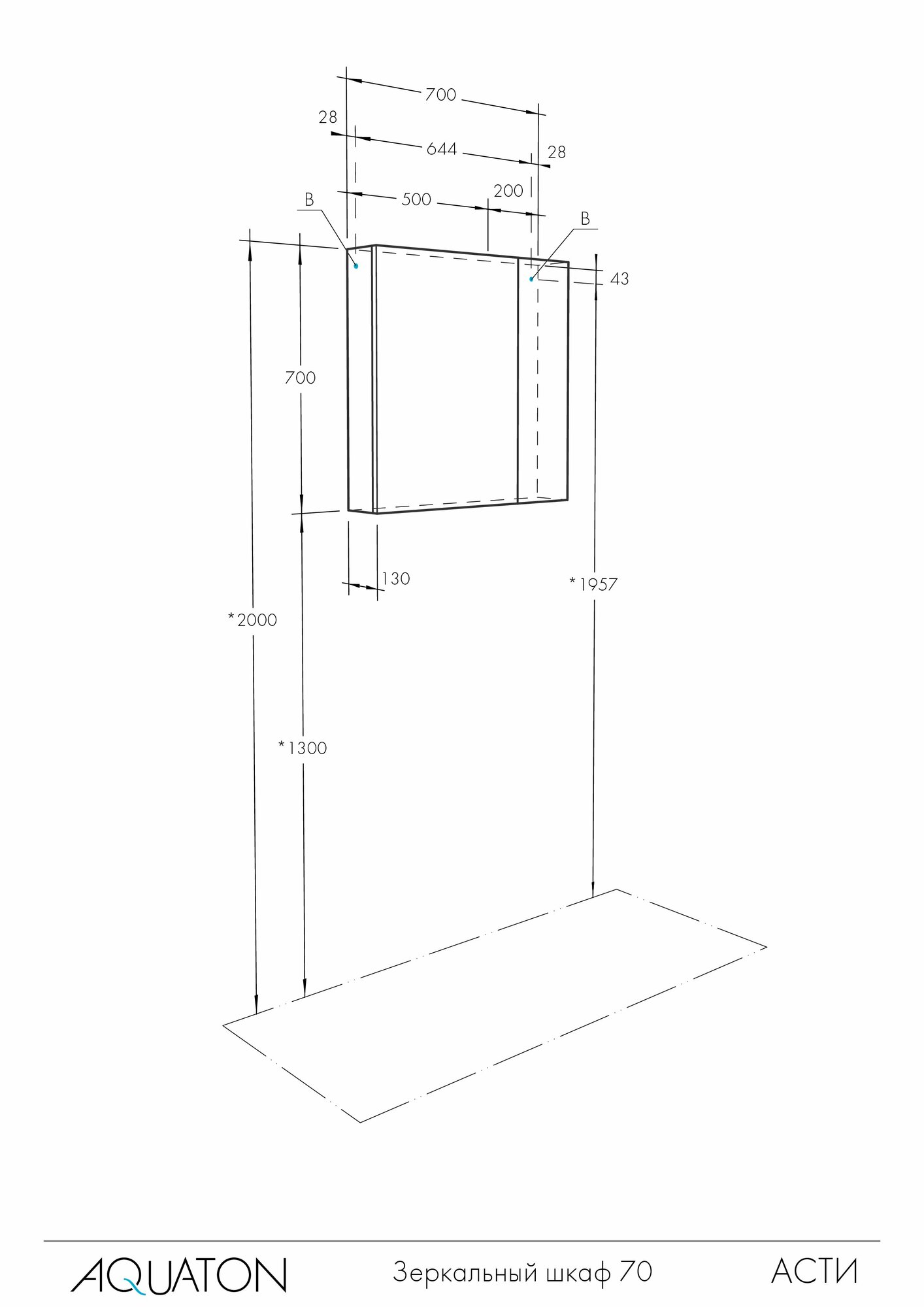 Зеркало-шкаф в ванную 2-х створчатый AQUATON Асти 70 1A263402AX010
