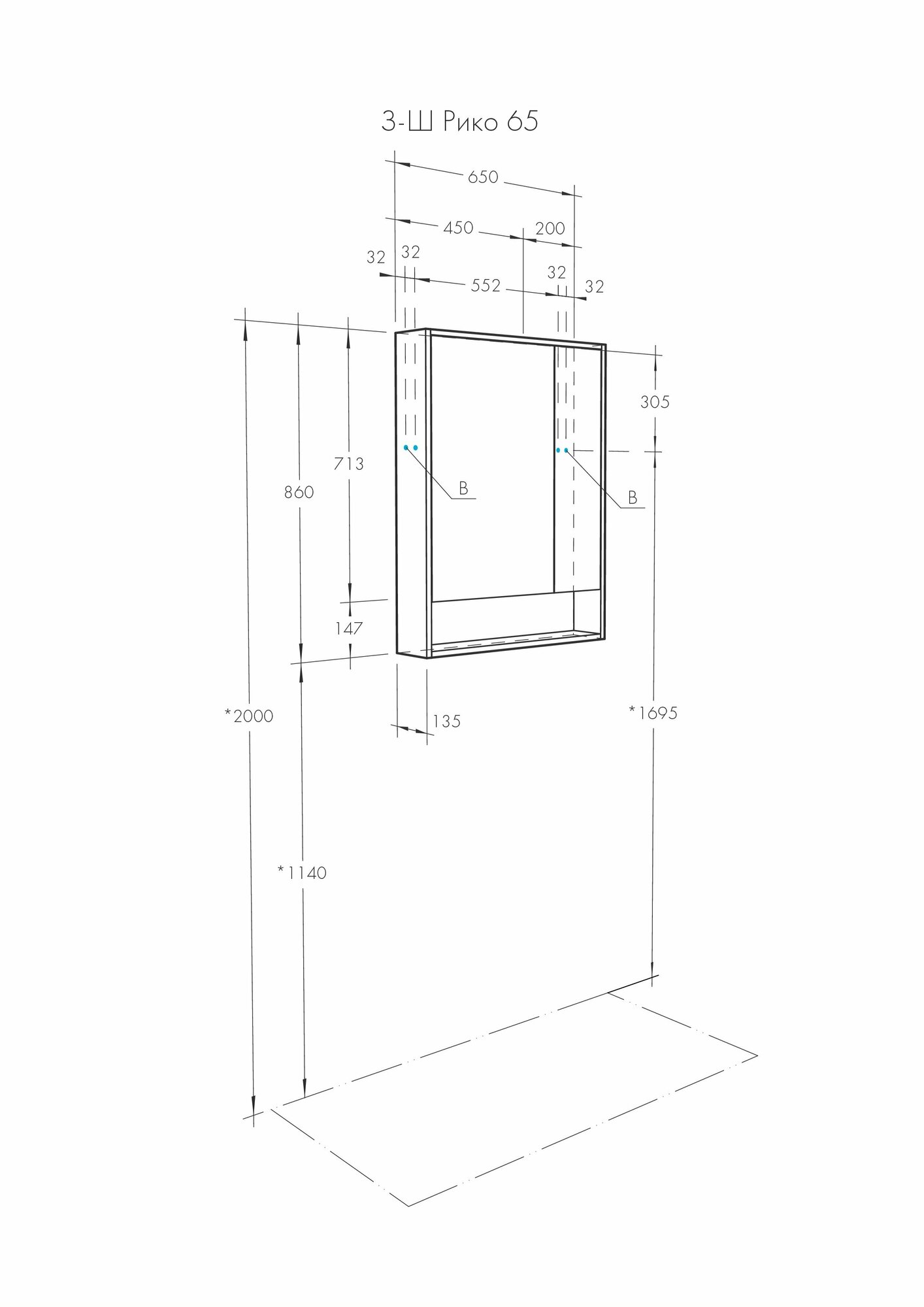 | Конструкция | шкаф-зеркало |