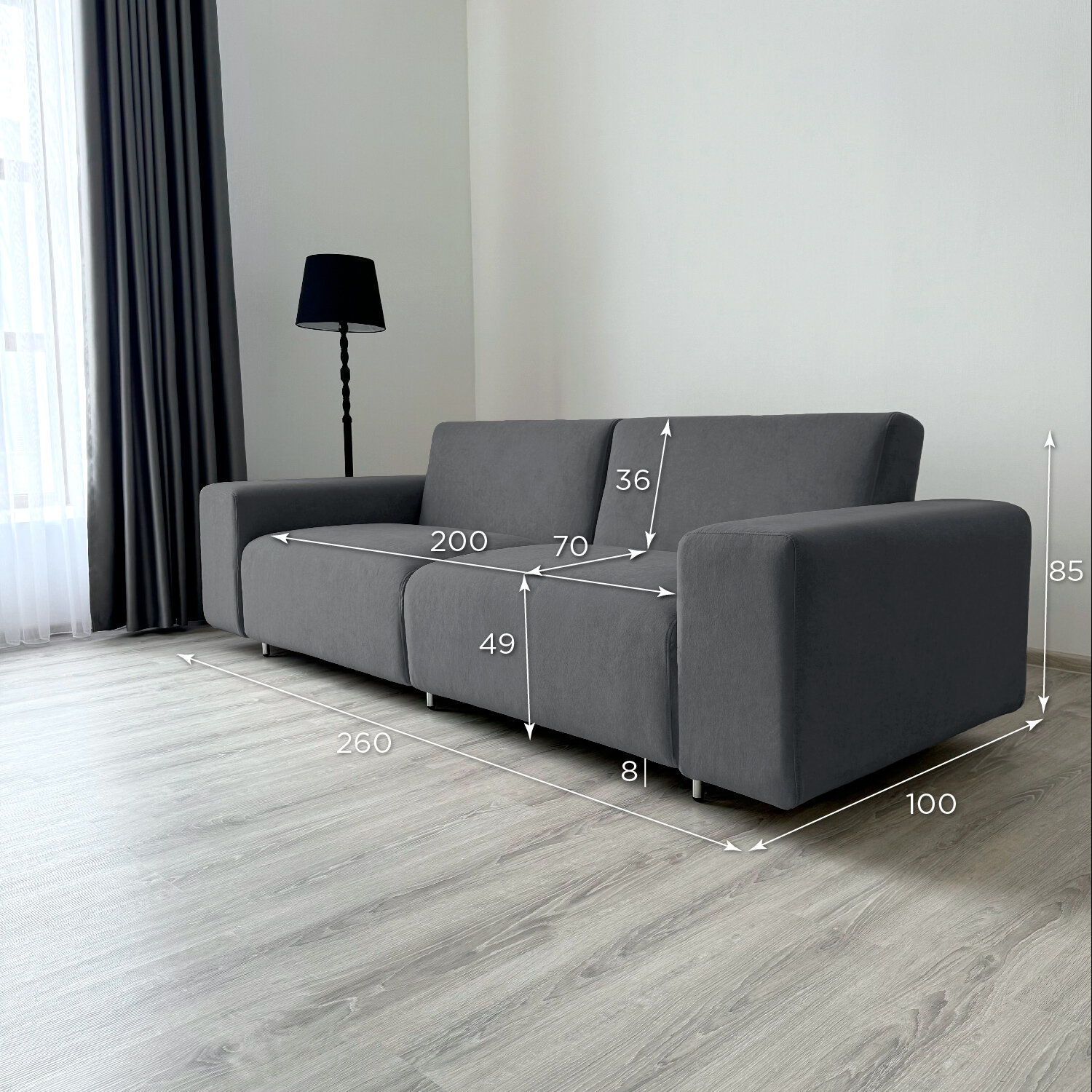 Купить Диван-кровать Redsofa Аурис 260 см графит Teddi. Раскладной прямой диван со съемными чехлами, для дома и офиса (Мебельный гарнитур бытового назначения)