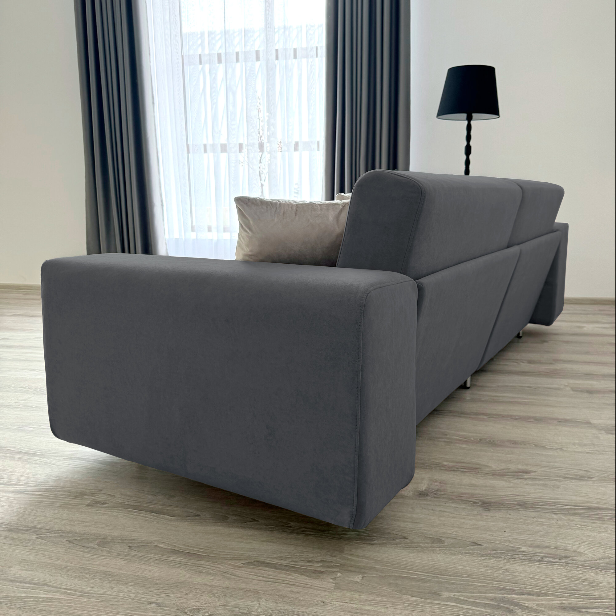 Диван-кровать Redsofa Аурис 260 см графит Teddi. Раскладной прямой диван со съемными чехлами, для дома и офиса.