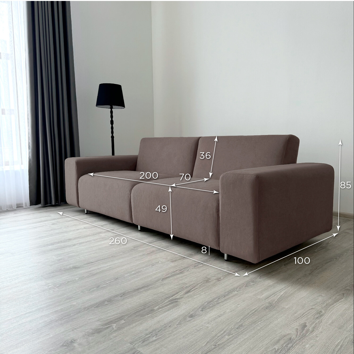 Диван-кровать Redsofa Аурис 260 см темно-бежевый Teddi. Раскладной прямой диван со съемными чехлами, для дома и офиса.