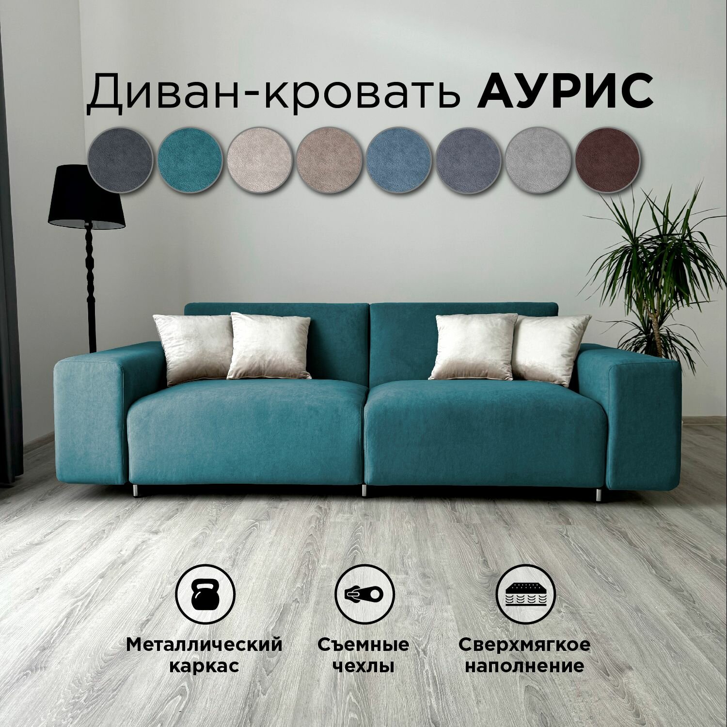 Диван-кровать Redsofa Аурис 260 см аквамарин Ocean. Раскладной прямой диван со съемными чехлами, для дома и офиса.