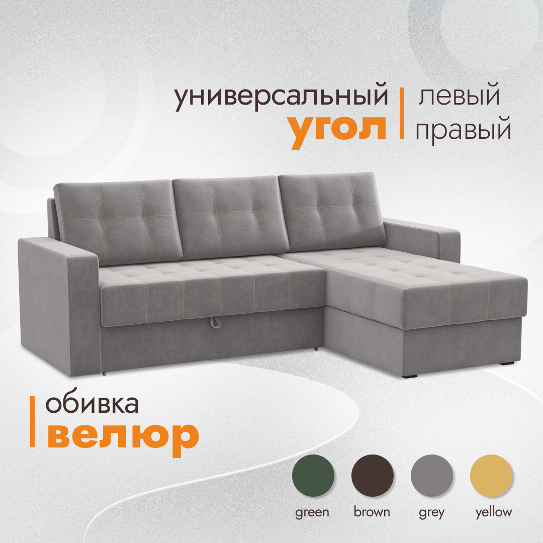 СохранитьДиван угловой Sofos "Олимп", раскладной диван-кровать (221х159х90), серый интересное: