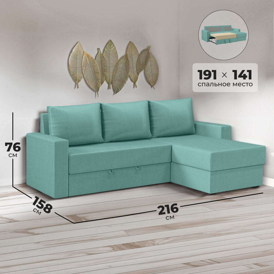 Купить Угловой диван-кровать Лео, с ящиком для хранения, механизм-дельфин, 216х158х76см, bingo mint