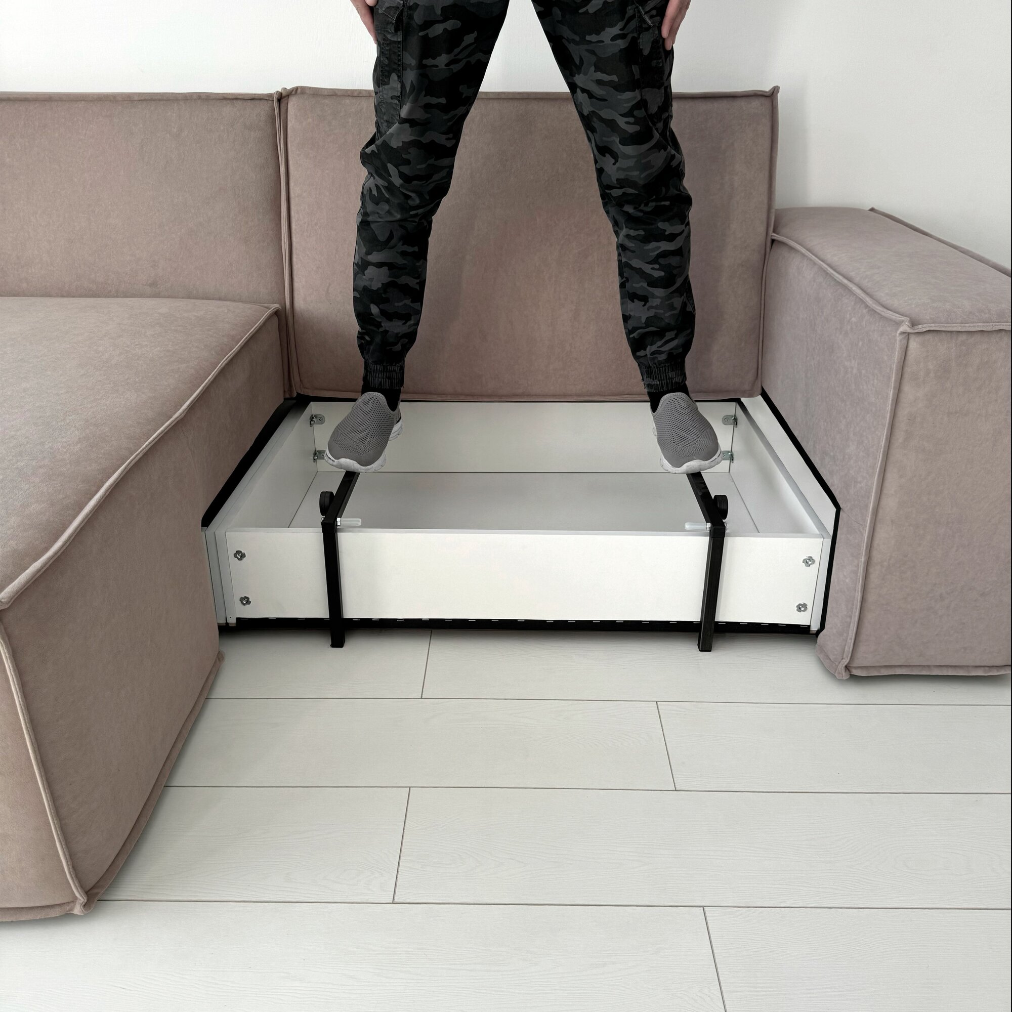 | Особенности | антивандальная обивка, модульный, пружинный блок, раскладная конструкция, с подлокотниками, съемный чехол, ящик для белья |