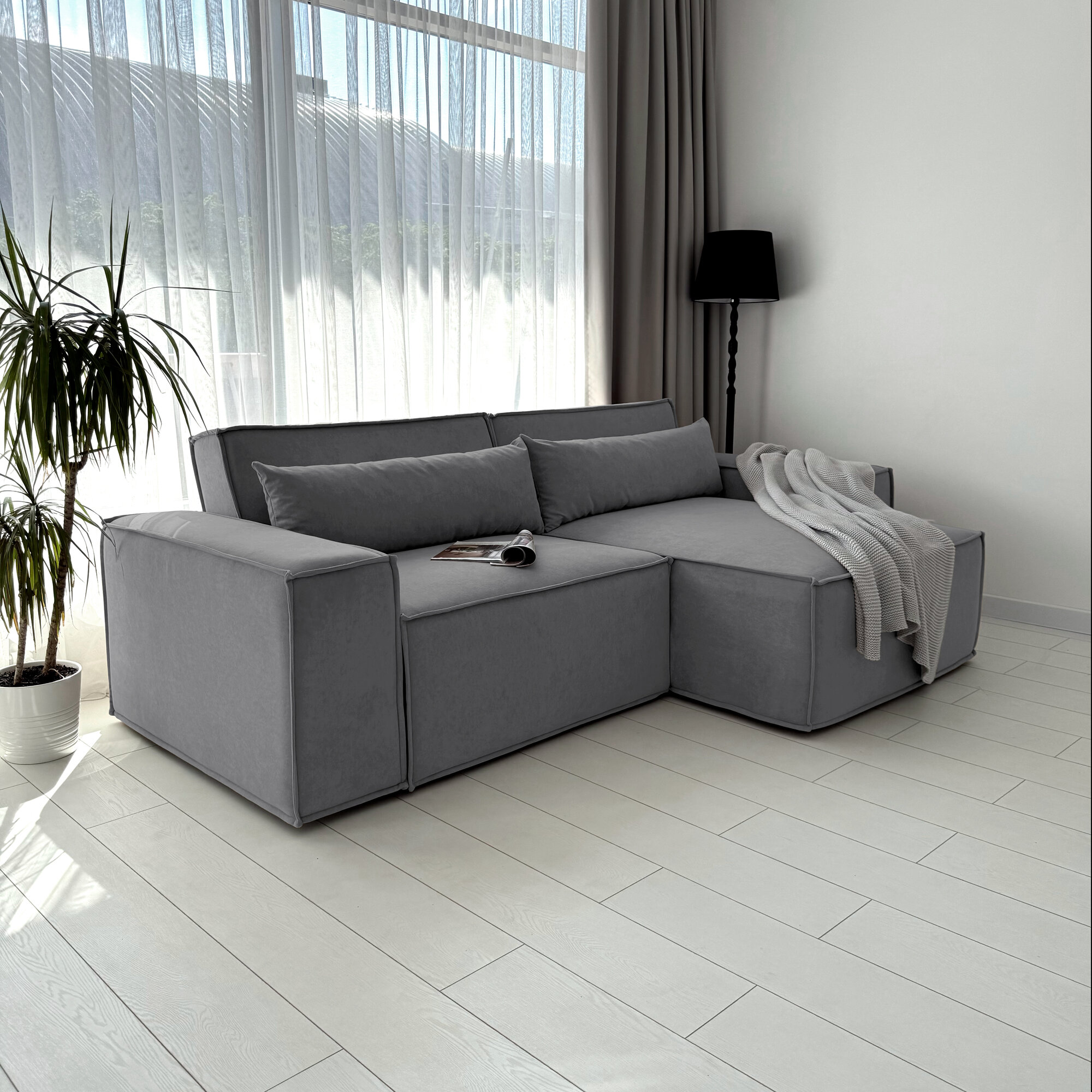 Диван-кровать Redsofa Пикассо 260 см серый Teddi. Раскладной угловой диван со съемными чехлами, для дома и офиса.
