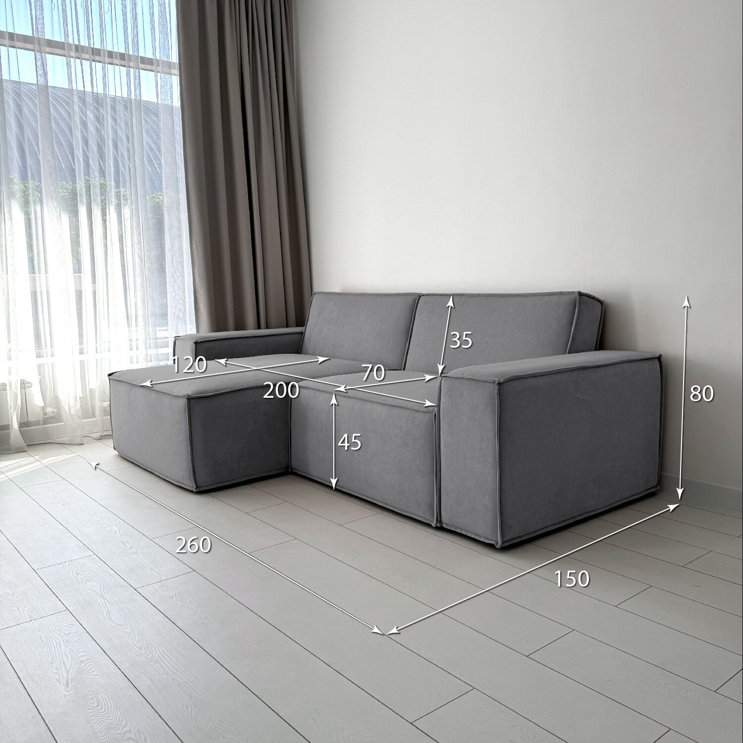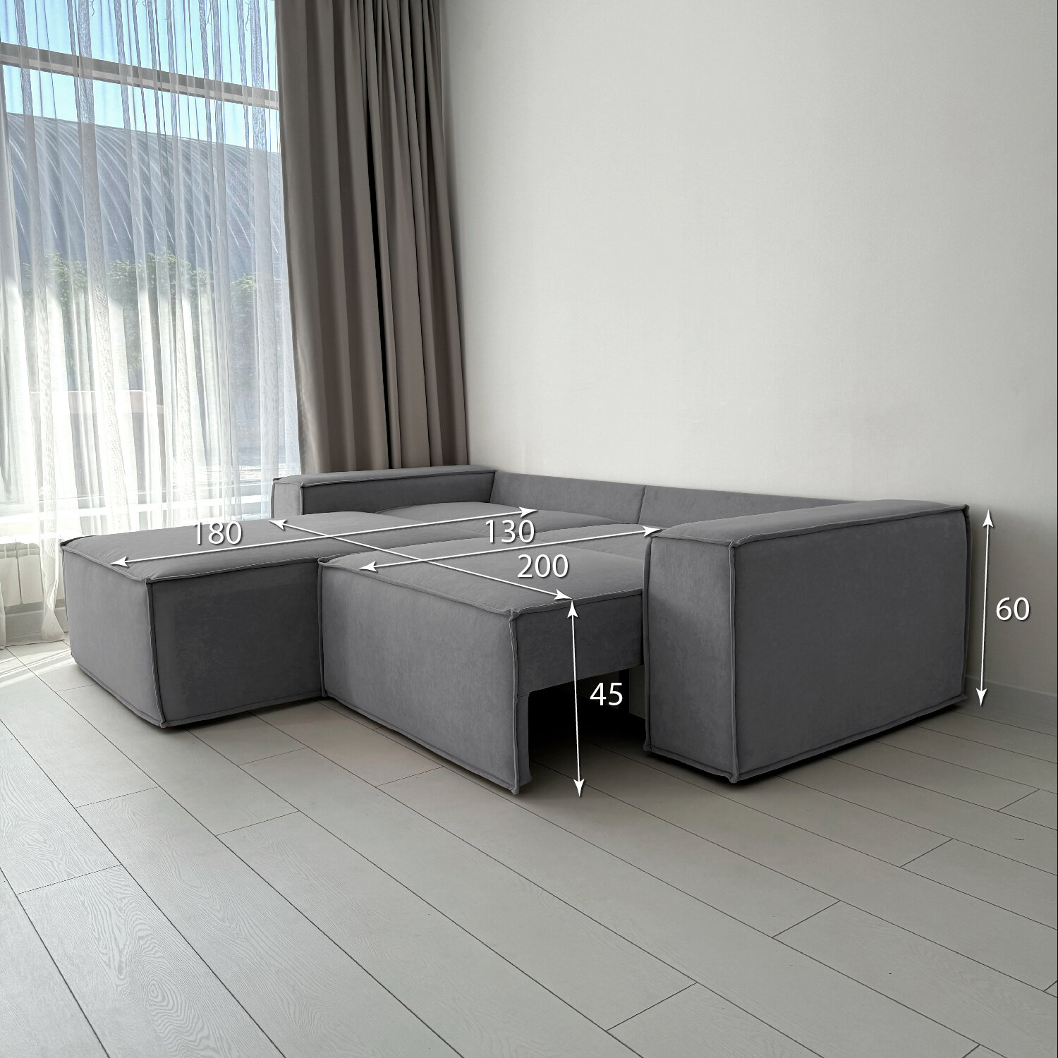 Диван-кровать Redsofa Пикассо 260 см графит Teddi. Раскладной угловой диван со съемными чехлами, для дома и офиса.