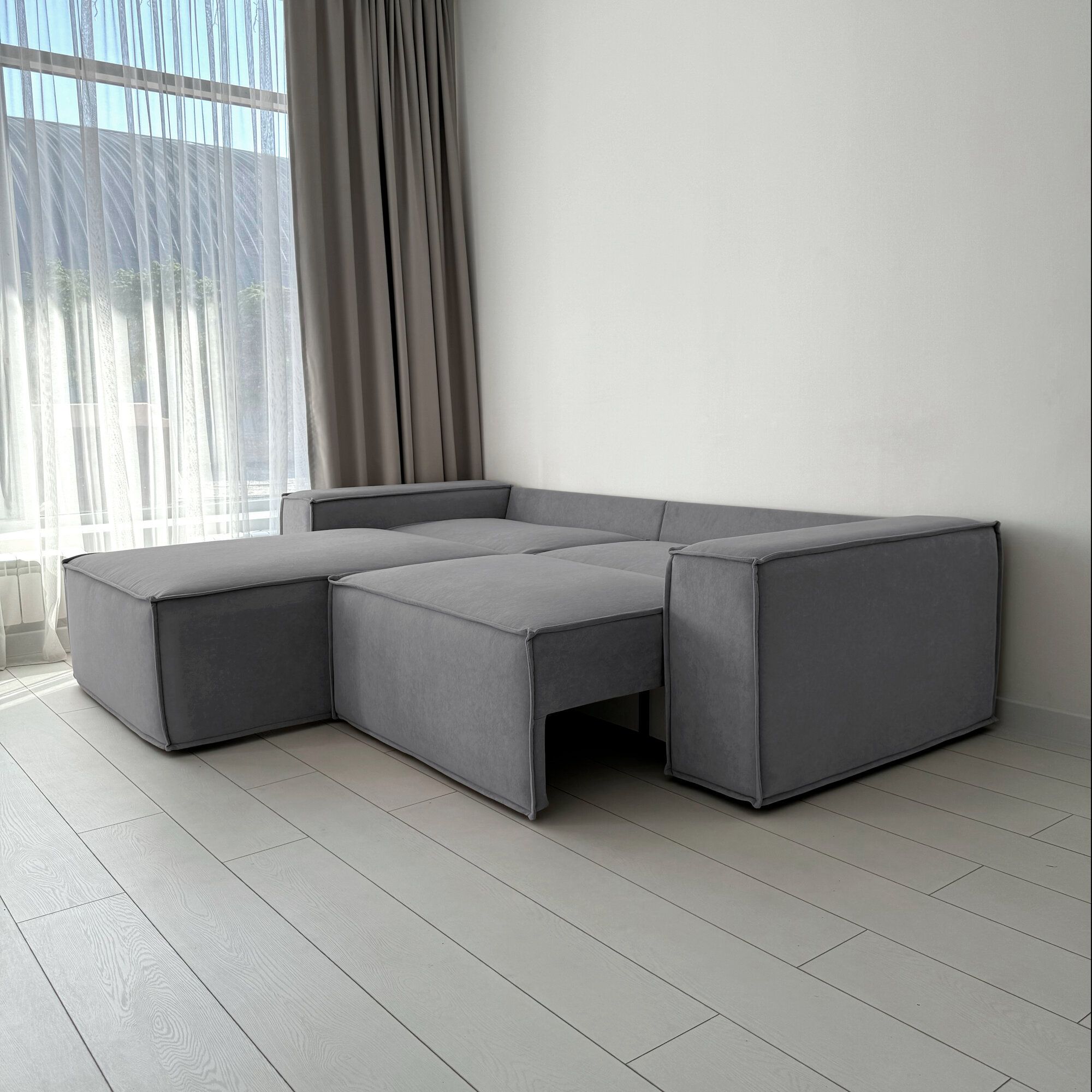 Диван-кровать Redsofa Пикассо 260 см серый Ocean. Раскладной угловой диван со съемными чехлами, для дома и офиса.