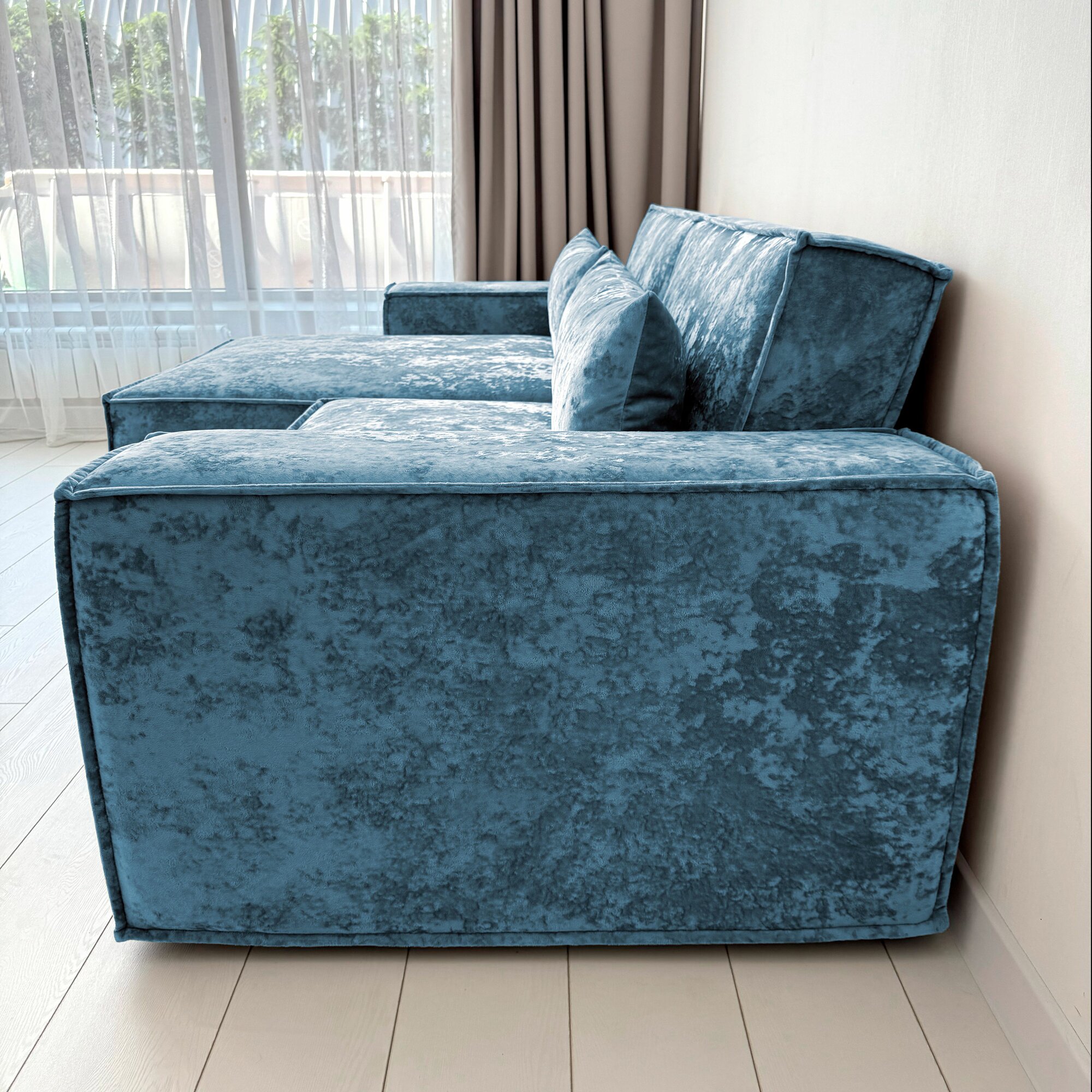 Диван-кровать Redsofa Пикассо 260 см аквамарин Ocean. Раскладной угловой диван со съемными чехлами, для дома и офиса (Мебельный гарнитур бытового назначения)