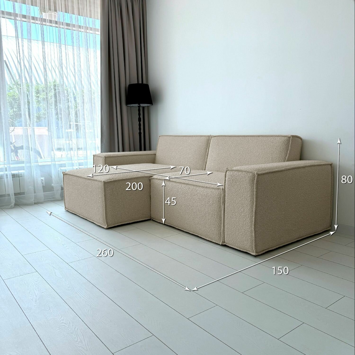 Купить Диван-кровать Redsofa Пикассо 260 см Букле Латте. Раскладной угловой диван со съемными чехлами, для дома и офиса (Мебельный гарнитур бытового назначения)