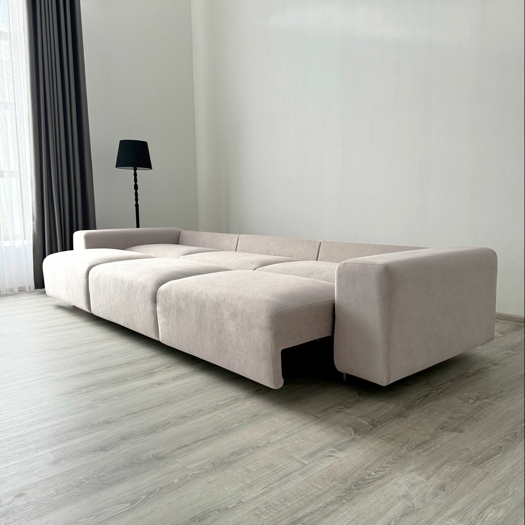 Диван-кровать Redsofa Аурис 360 см светло-бежевый Ocean. Раскладной прямой диван со съемными чехлами, для дома и офиса.