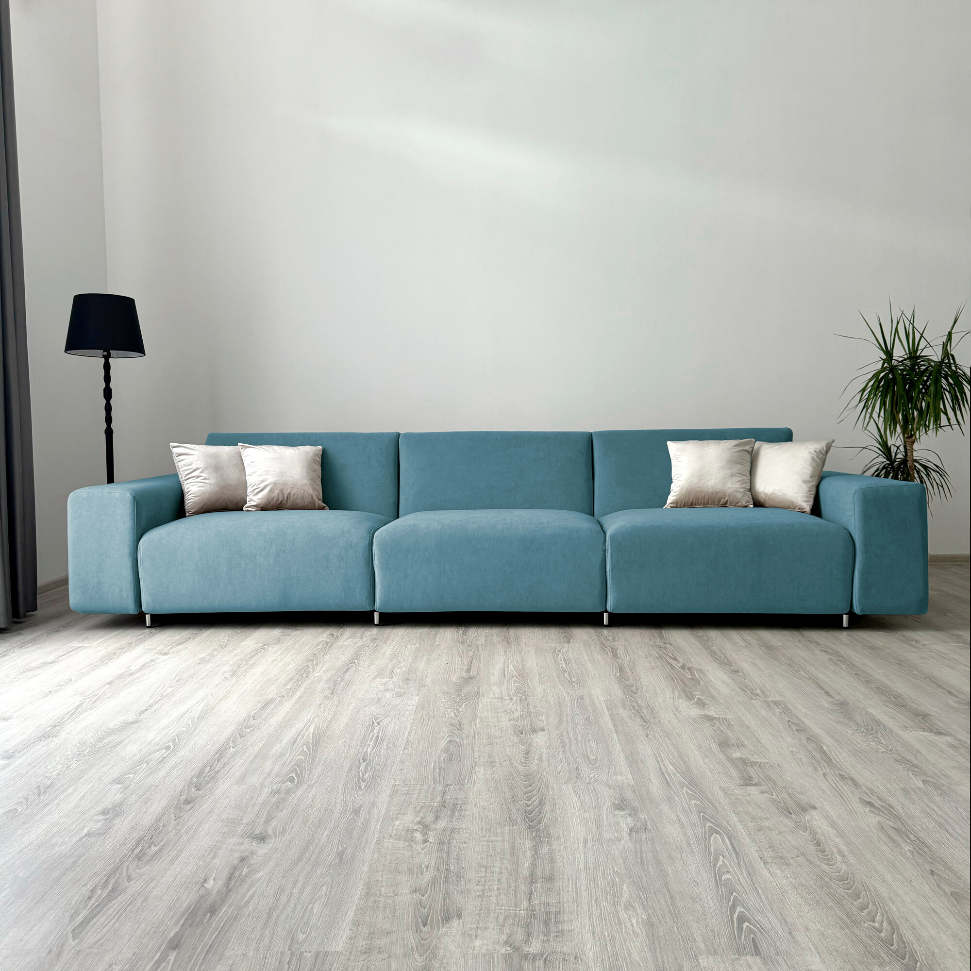 Диван-кровать Redsofa Аурис 360 см аквамарин Ocean. Раскладной прямой диван со съемными чехлами, для дома и офиса.