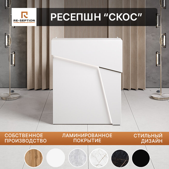 Купить Стойка Ресепшн Белая со скосом 100х120х60см /ЛДСП/ Для администратора/ Дизайнерская/Для офиса/ С Подсветкой/ Белый