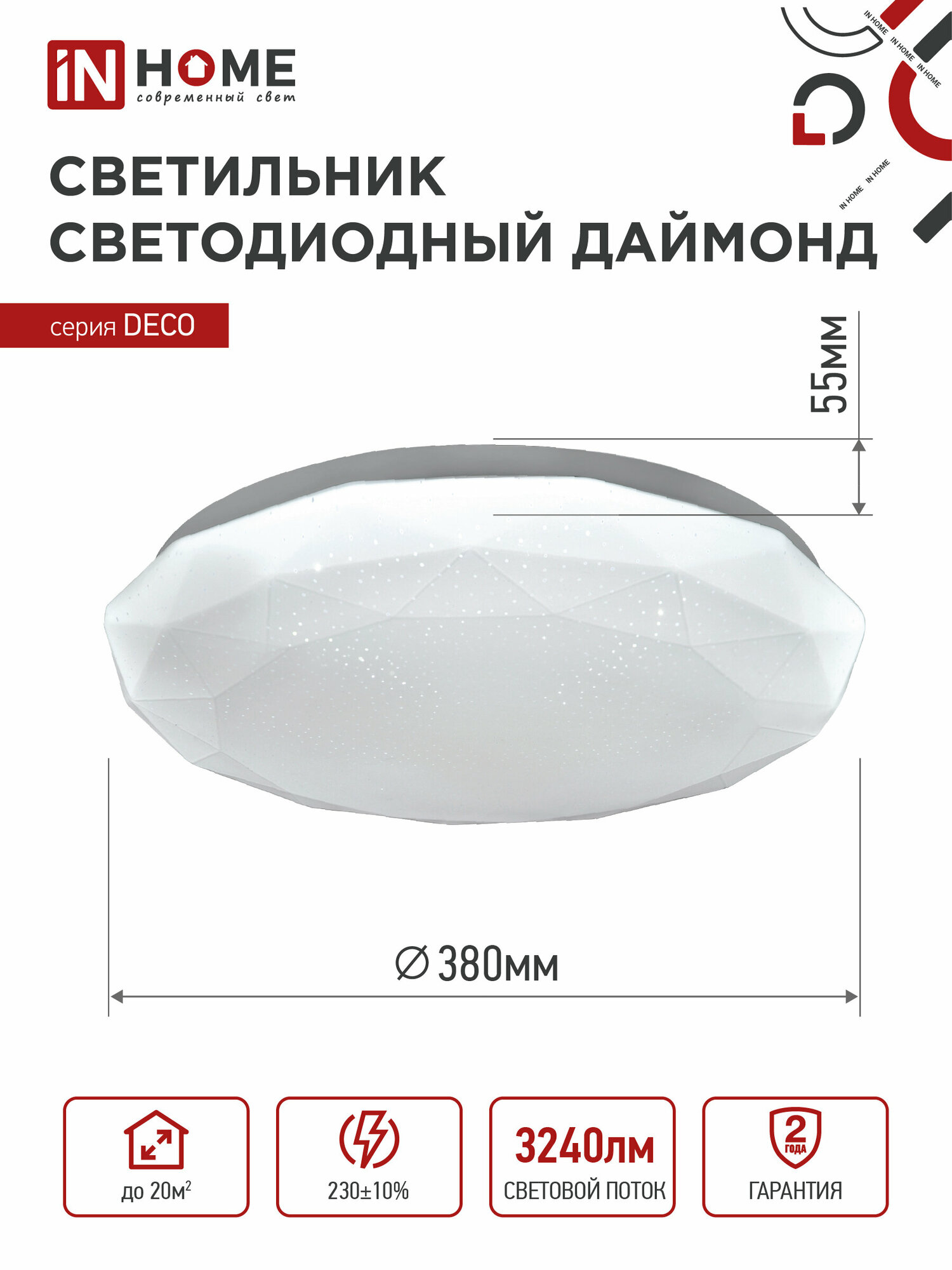 IN HOME Светильник светодиодный DECO даймонд 36Вт 230В 6500К 3240Лм 380х55мм