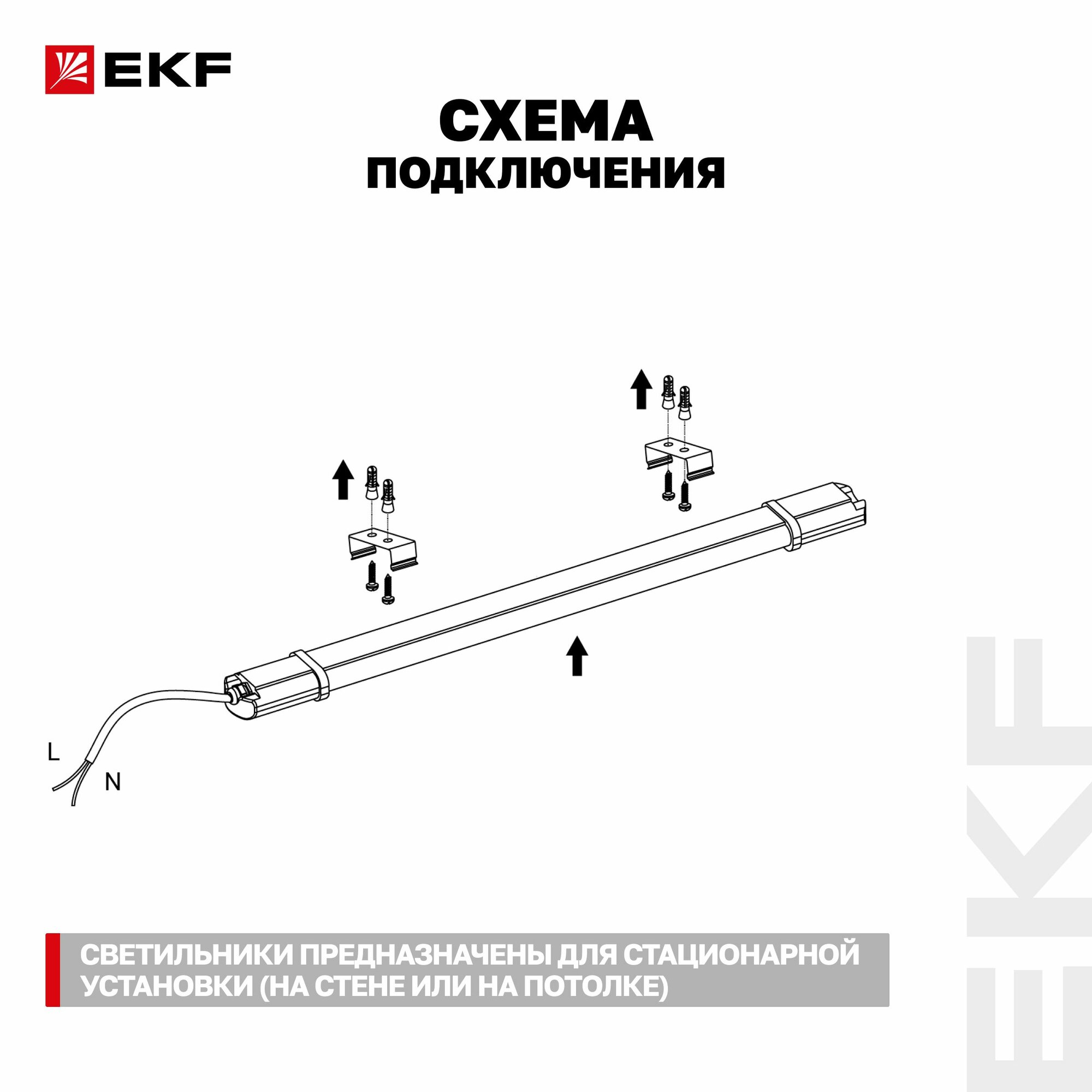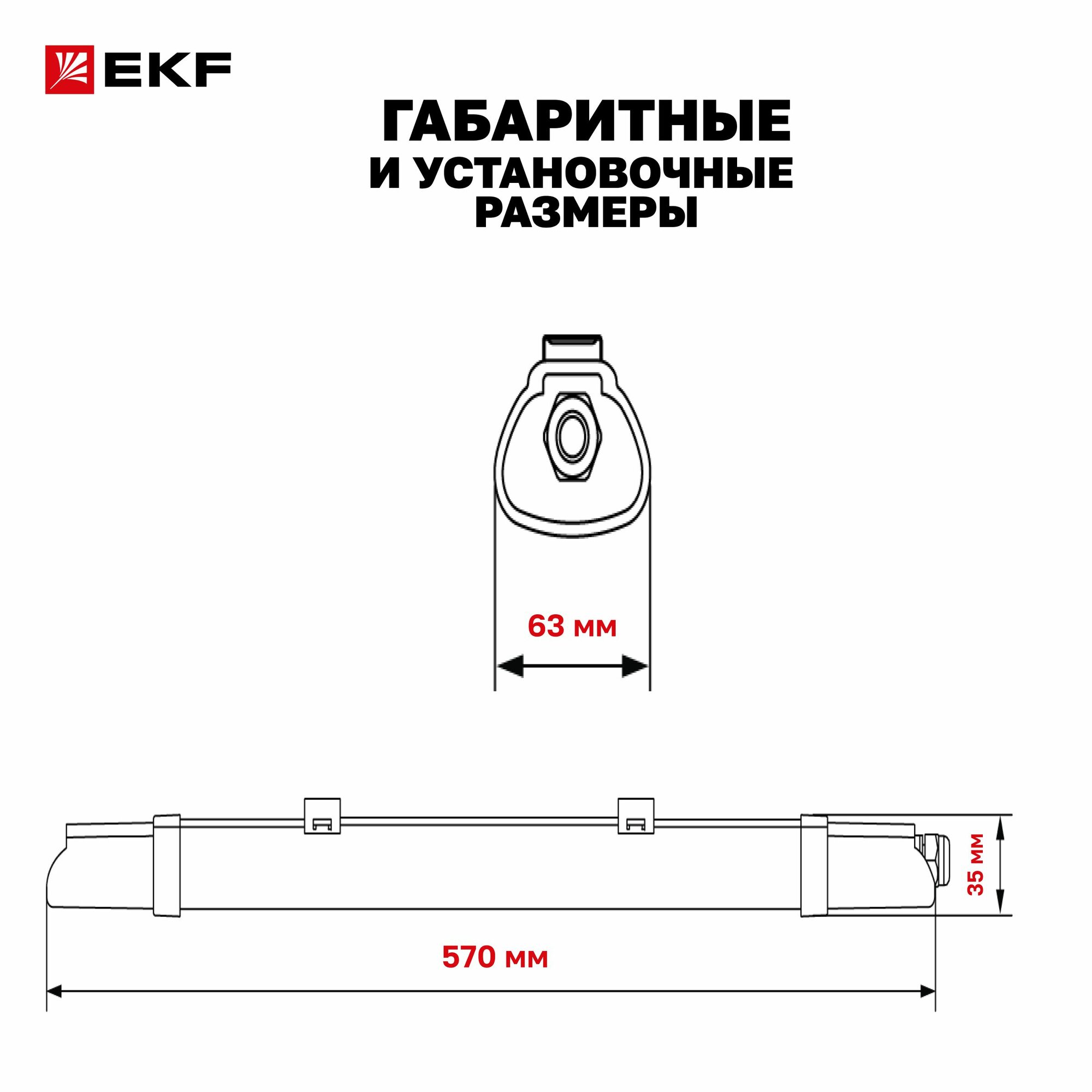 Линейный светильник светодиодный, пылевлагозащищенный промышленный; ДСП-1002 18Вт 1600 Лм 6500K (холодный яркий дневной белый) IP65 600мм EKF PROxima интересное:
