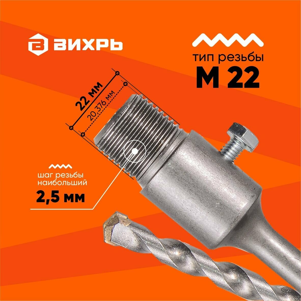 Хвостовик Вихрь SDS+ М22 для коронки по бетону