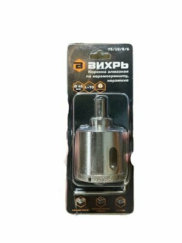 Ниже Вы можете прочитать отзывы на Коронка алмазная Вихрь по керамограниту/керамике 45 мм, 73/10/9/6, ознакомится с подробными характеристиками, посмотреть интересные обзоры и фотографии на Коронка алмазная Вихрь по керамограниту/керамике 45 мм, 73/10/9/6.