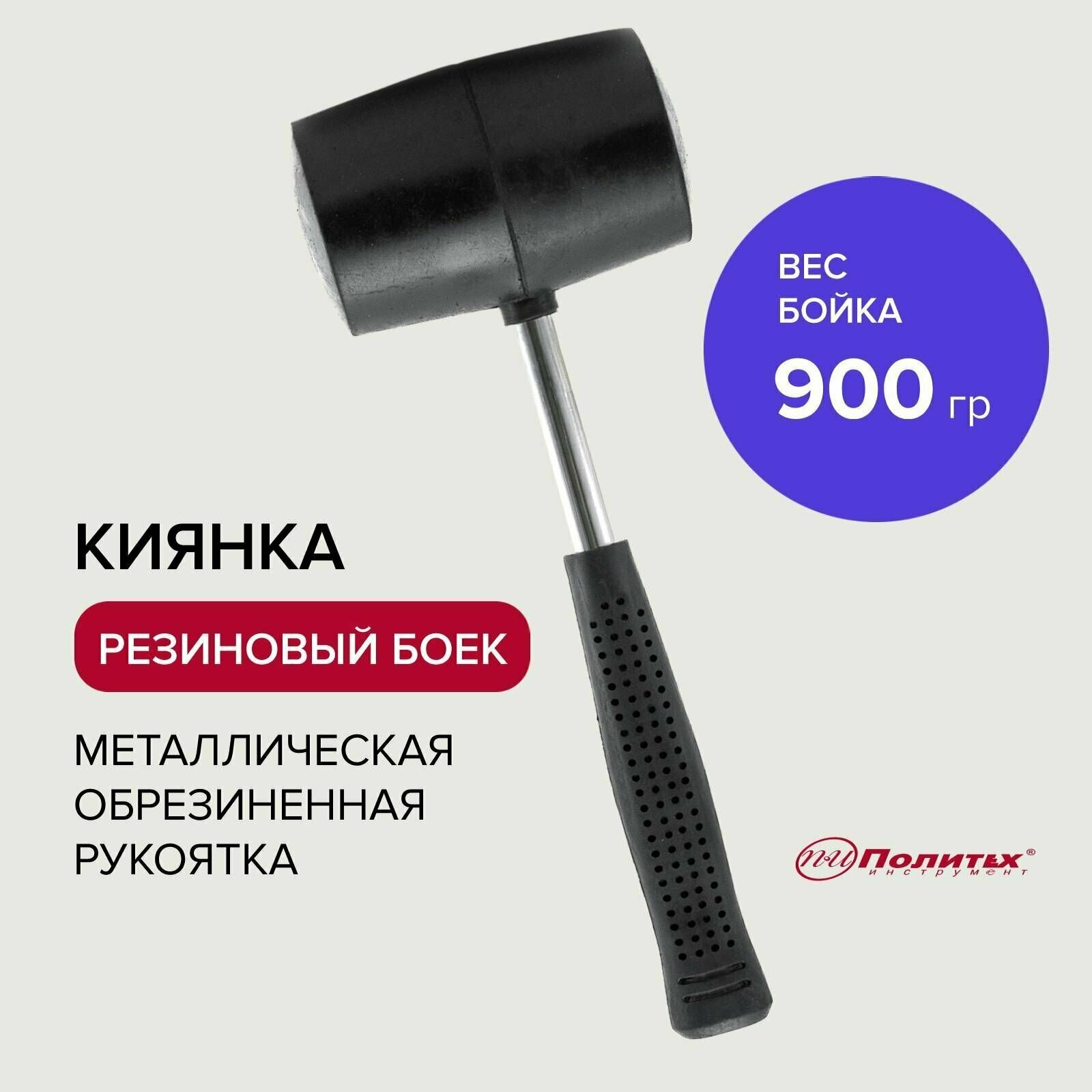 Купить Киянка резиновая черная с металлической обрезиненной рукояткой 900 г, Политех Инструмент