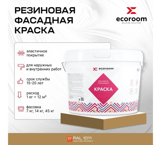 Фасадная резиновая краска ECOROOM RAL 1011 коричнево-бежевый, 1.3 кг Е-Кр -3583/1011