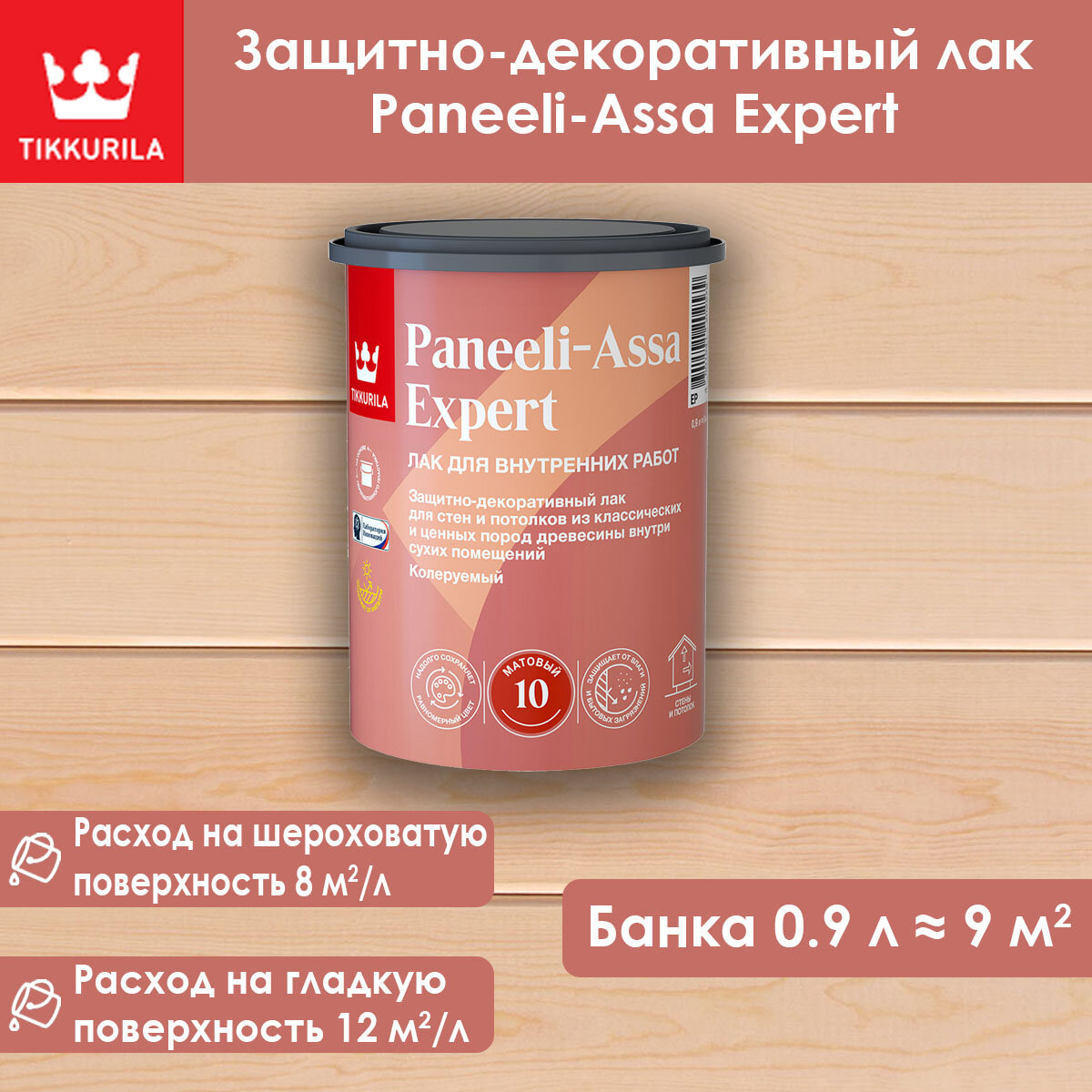 Тиккурила Панели Ясся Эксперт лак интерьерный матовый (9л) / TIKKURILA Paneeli Assa Expert EP лак колеруемый для стен и потолков акриловый матовый (9л