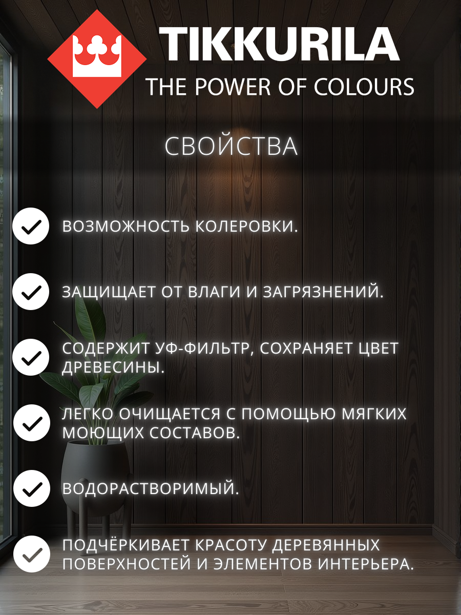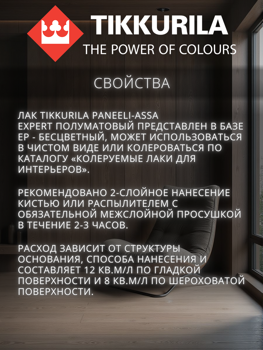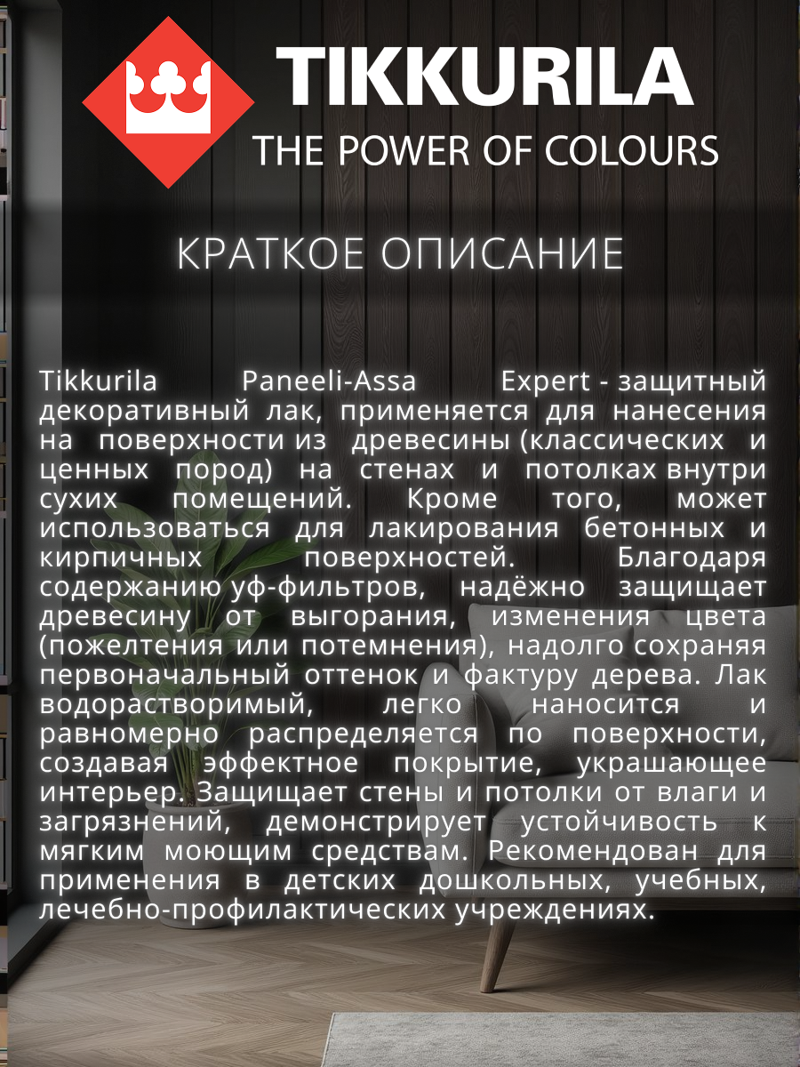 Тиккурила Панели Ясся Эксперт лак интерьерный полуматовый (9л) / TIKKURILA Paneeli Assa Expert EP лак колеруемый для стен и потолков акриловый полумат