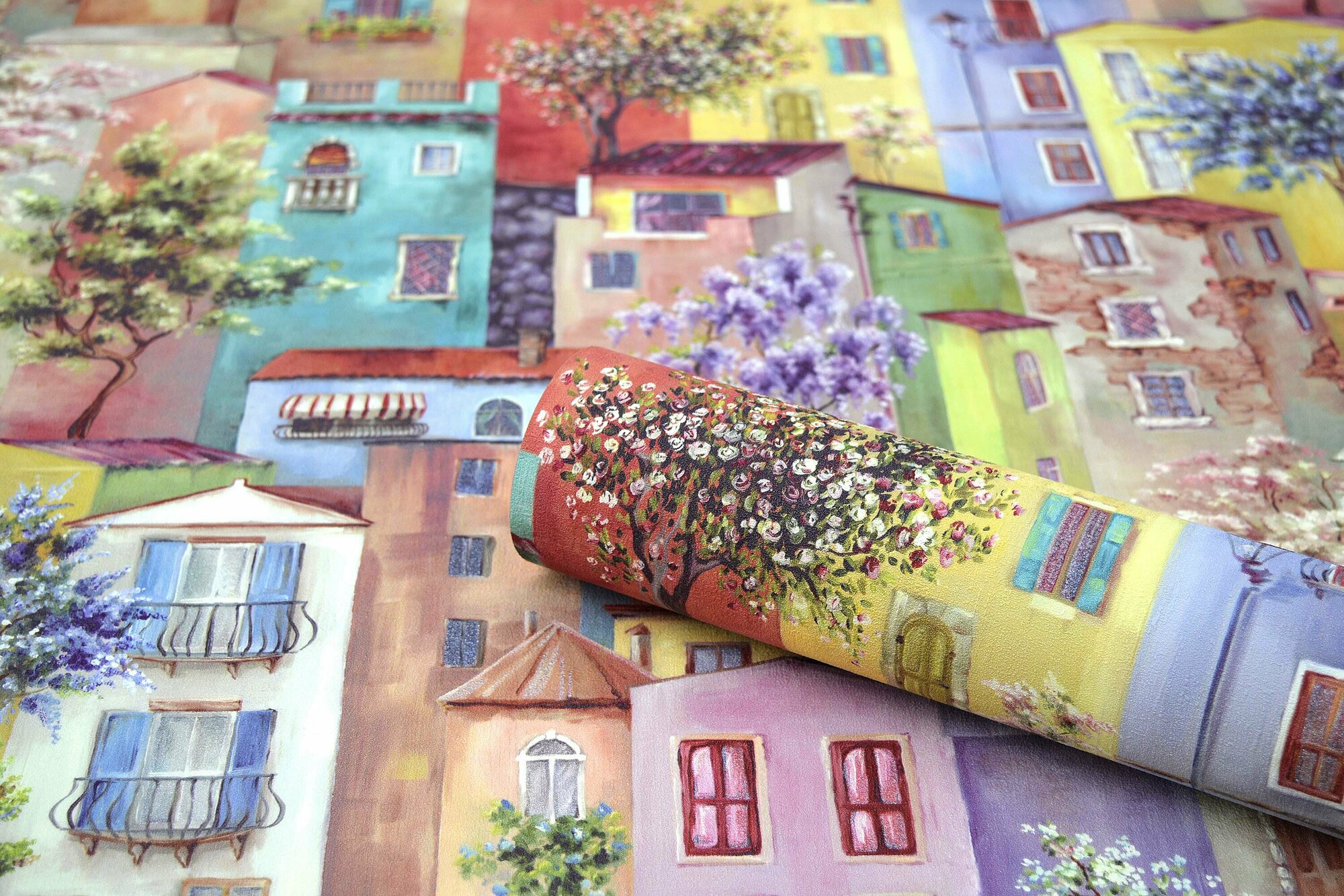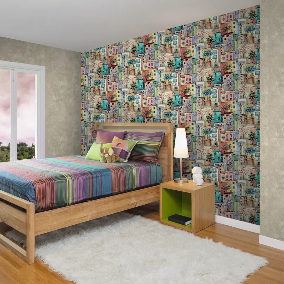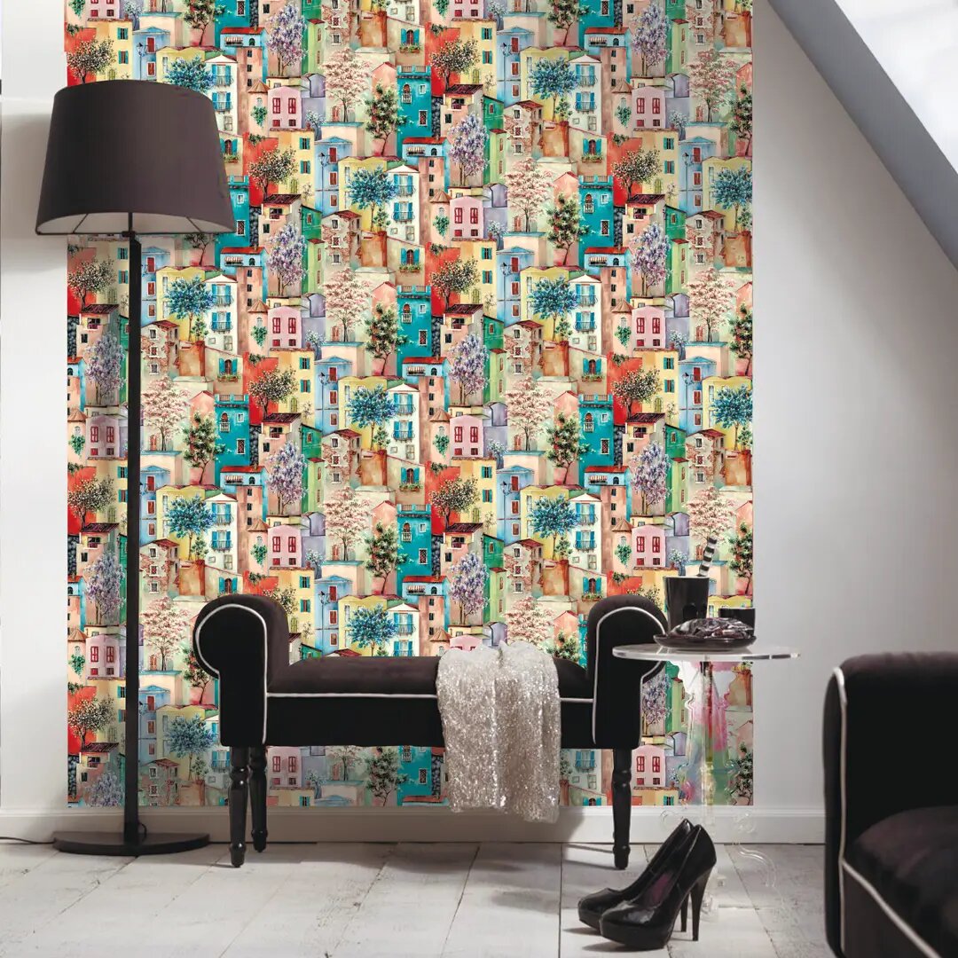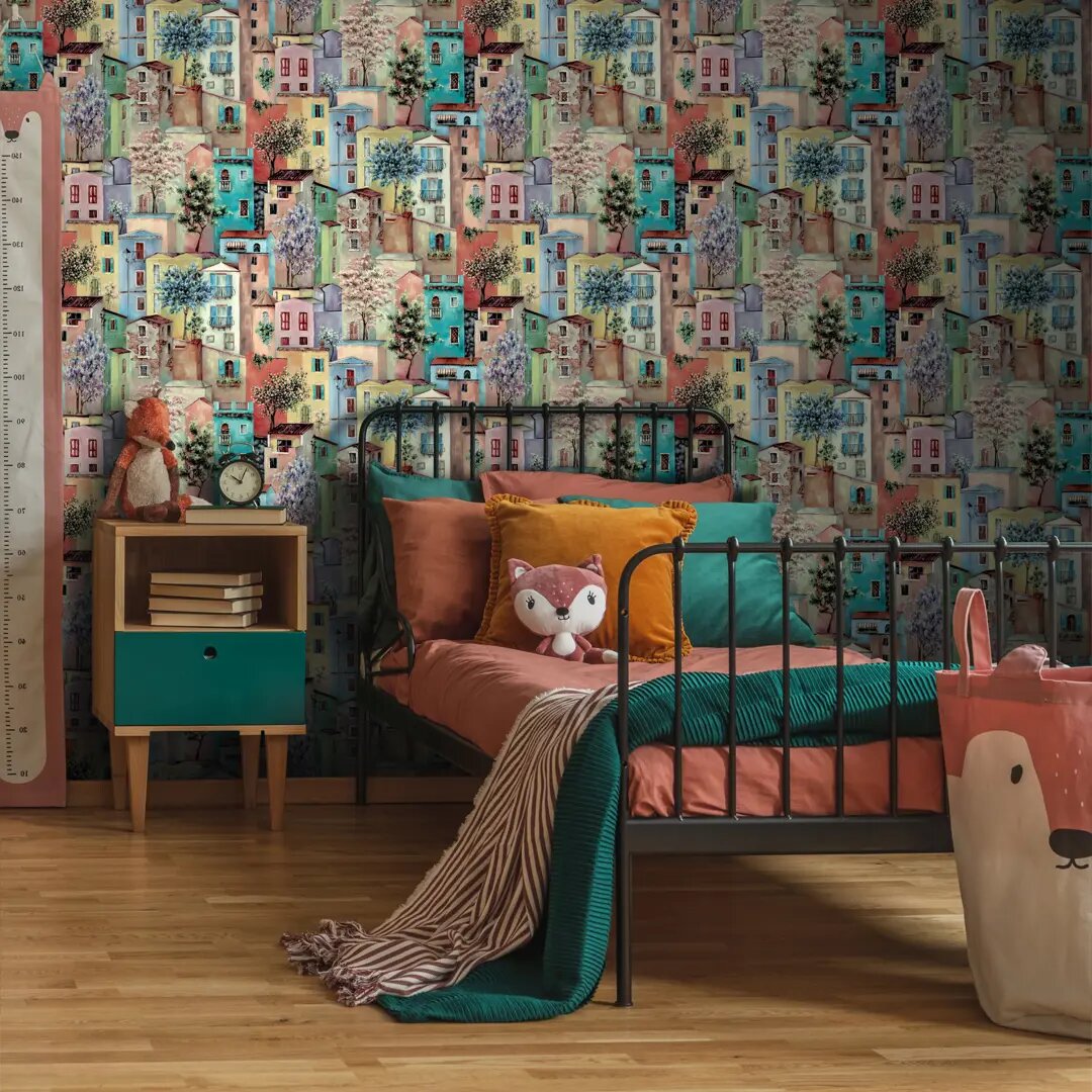 Обои Винил на флизелине 60371-03 Profi Deco Домики персиково-голубые 1,06 м., 10 м.