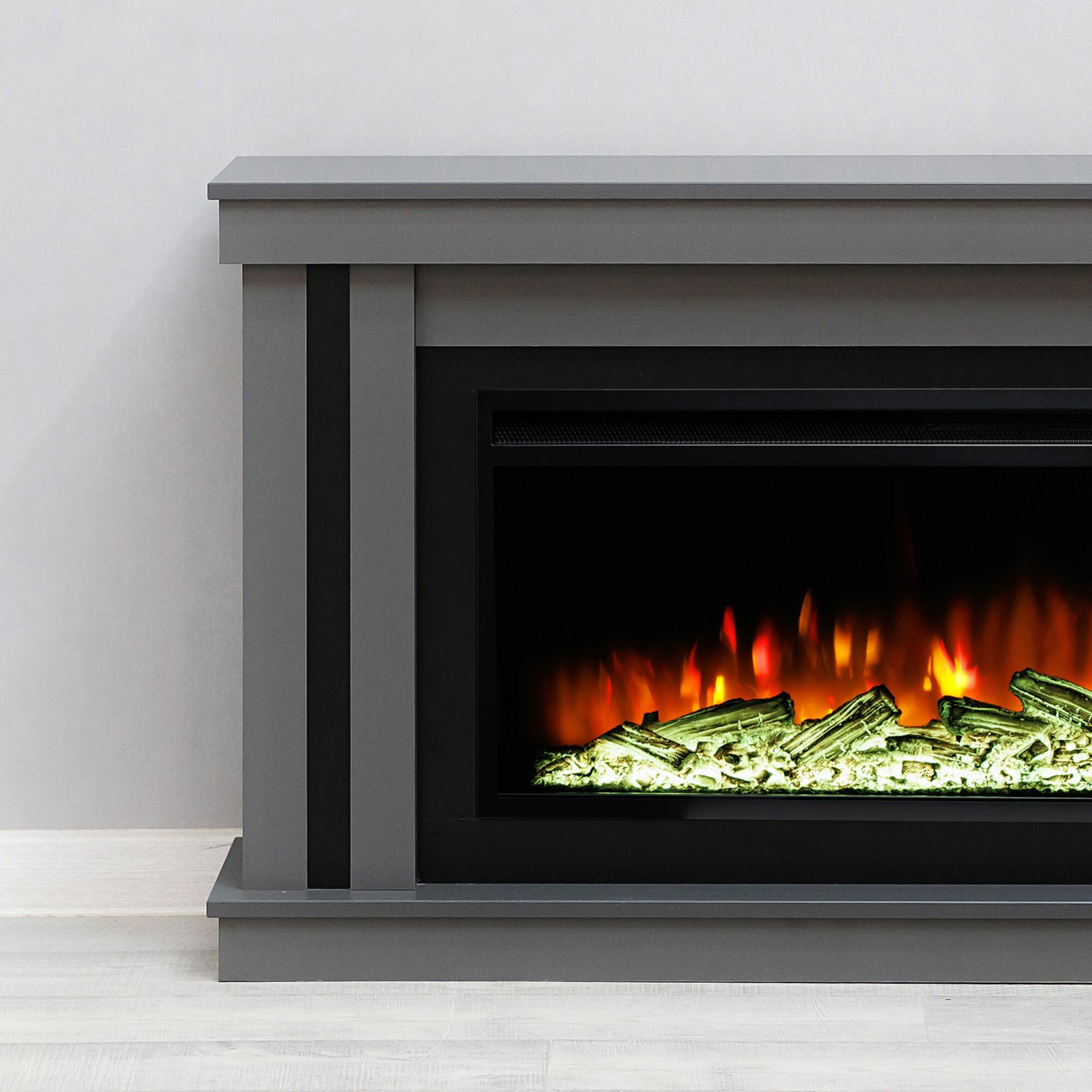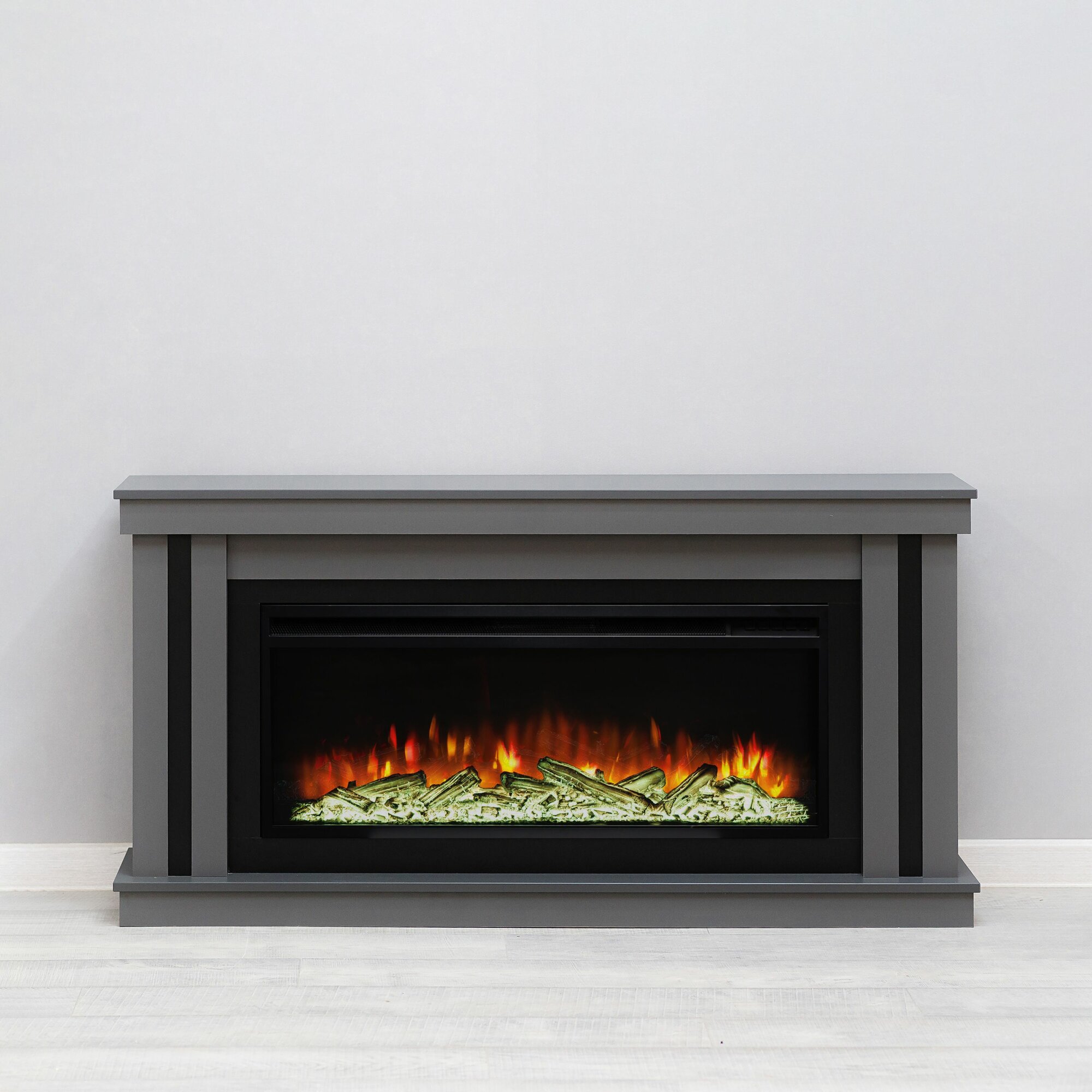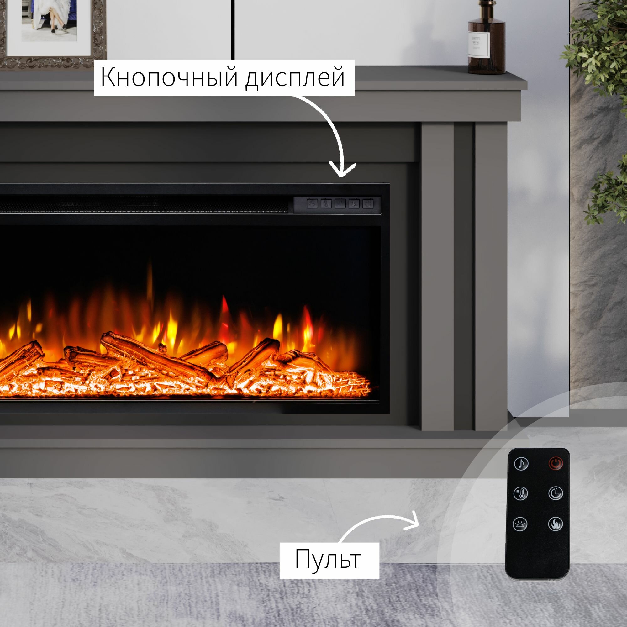 Электрический камин ELEKAM NEO серый + чёрный с очагом Vegas с обогревом, пультом управления и потрескиванием дров